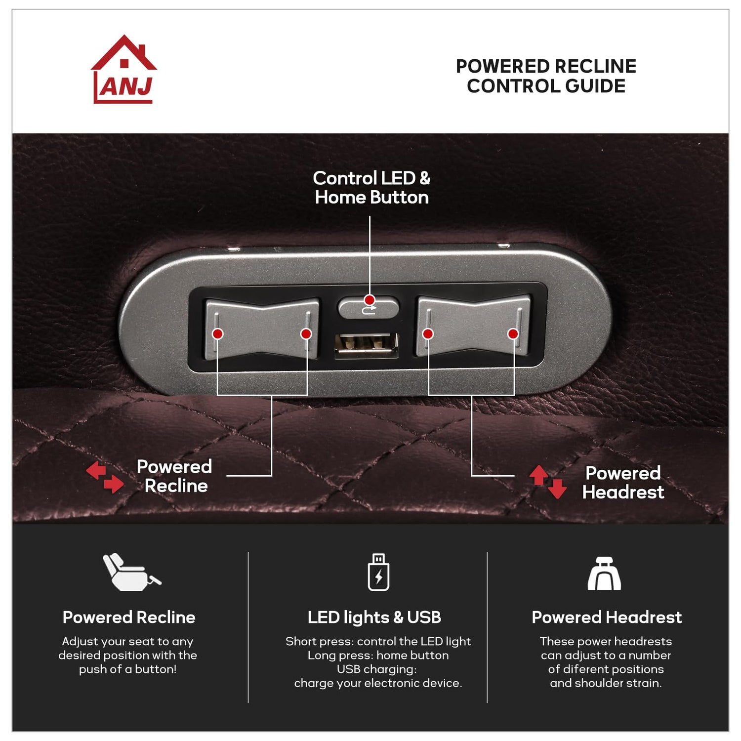 - Electric recliner with individually adjustable headrest: The recliner controls the headrest and backrest via dual motors. The headrest is easily adjustable via side buttons, which can help relax your neck muscles and give you the perfect resting angle. Electric tilt of the seat back and footrests are also standard. Stretch your legs and enjoy a movie night