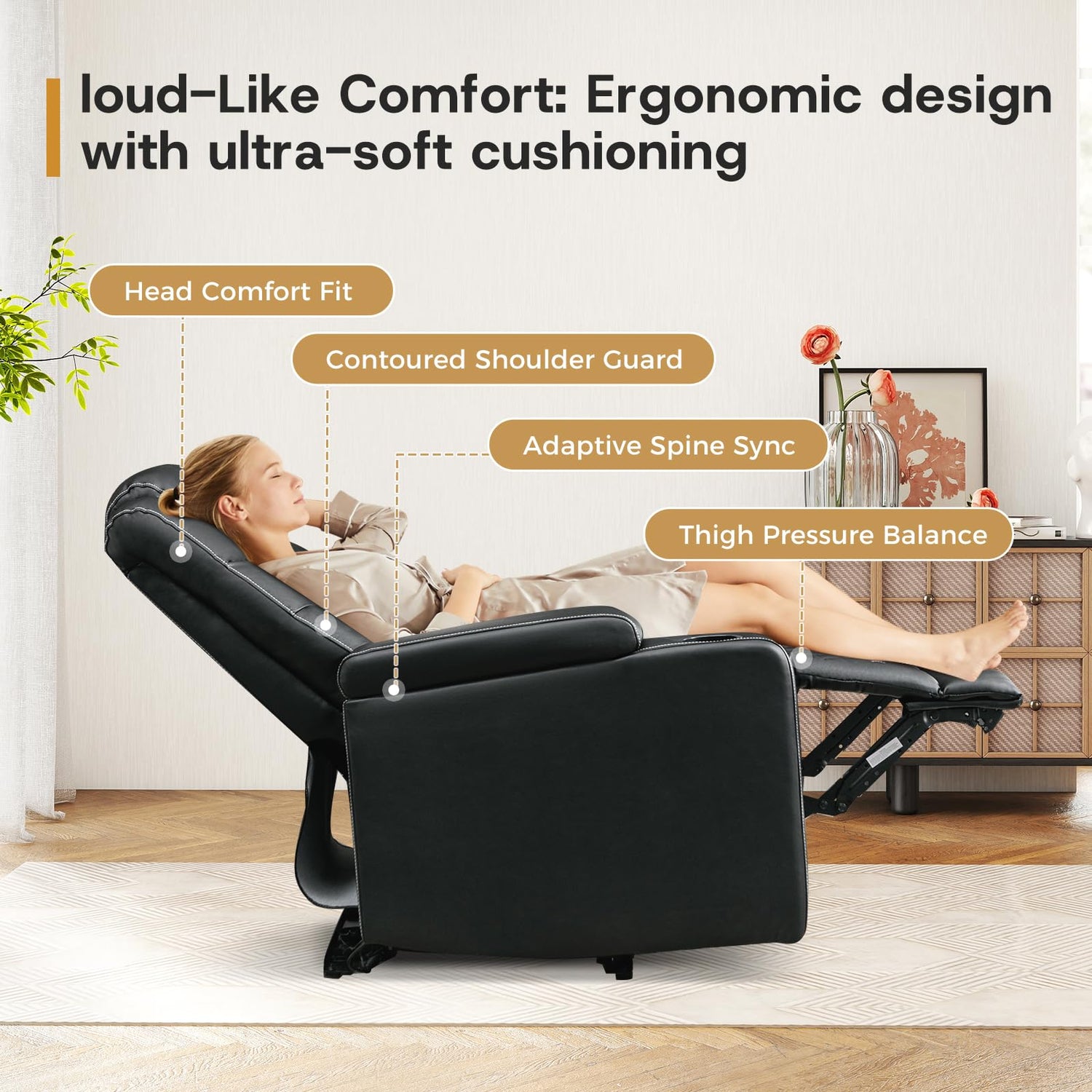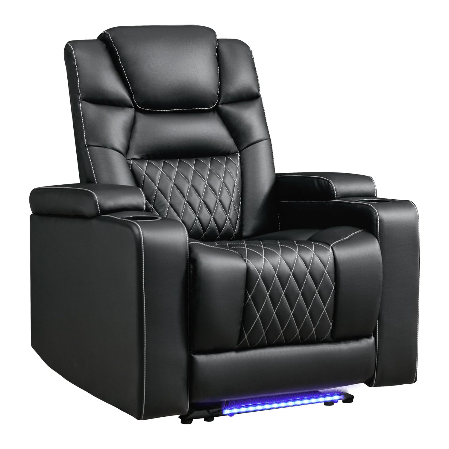 ANJ Power Recliner Chair with USB Port, Electric PU Leather Home Theater Seating for Living Room, Movie Reclining Chairs with Blue Ambient Lighting, Hidden Arm Storage, Cup Holders (Black)