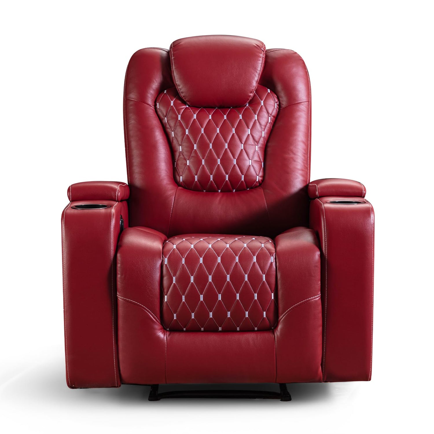 ANJ Power Recliner Chair with USB Ports and Cup Holders - Overstuffed Electric Home Theater Seating PU Leather Reclining Furniture with Hidden Arm Storage, Easy to Clean (Set of 2, Red)