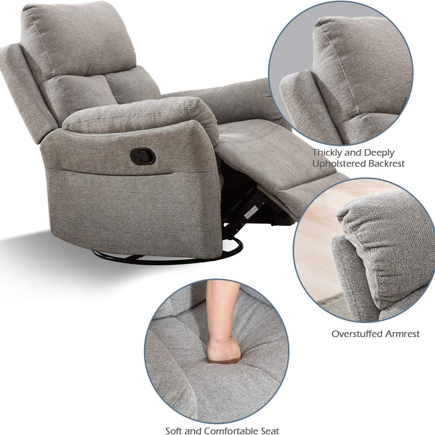 - Manual Swivel Rocker Recliner Chair: This glider swivels and reclines too, adding to its comfort, the recliner back can be adjusted from 90° - 150°, can be flexibly used in three modes to meet your demand