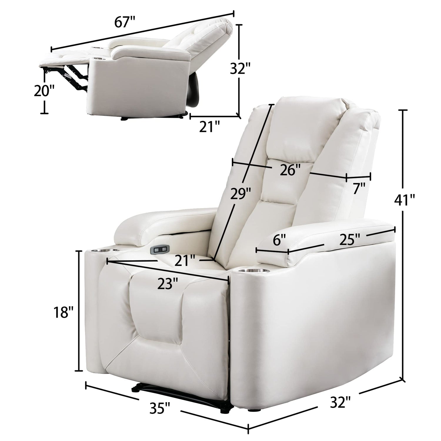- 【Armrests for Storage & Cup Holders】When you enjoy your time, you will definitely feel that holding something in your hand is not good. We have also considered this for you. Our media room power chair has 2 hidden arm storage, which can be enough for you to place your remote control, mobile phone, ipad, and books. 2 cup holders can place your drinks and free your hands.
