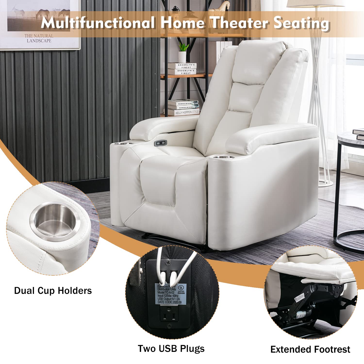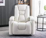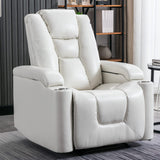 ANJ White Power Recliner Chair Electric Home Theater Seating Soft Leather Movie Chair for Living Room Overstuffed Single Reclining Sofa with Hidden Arm Storage, Cup Holders and USB Ports (Cream White)