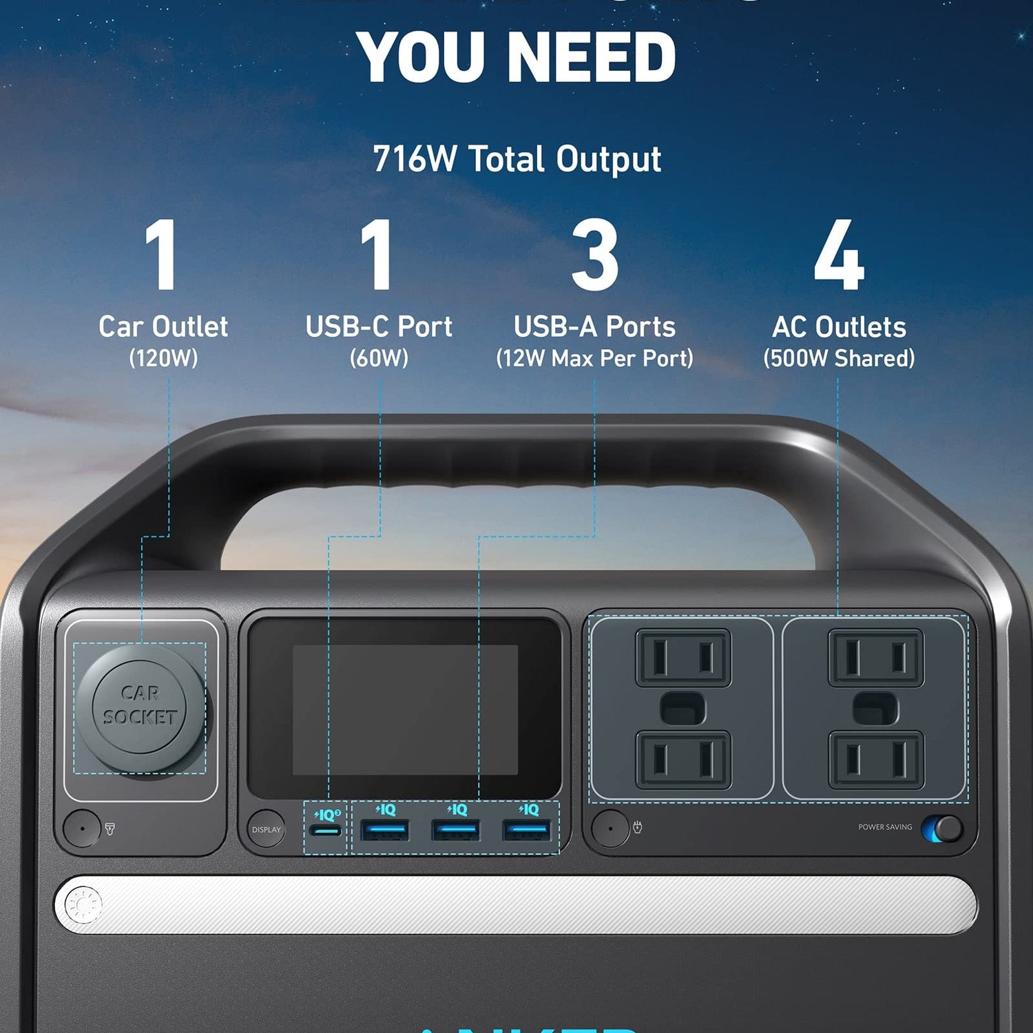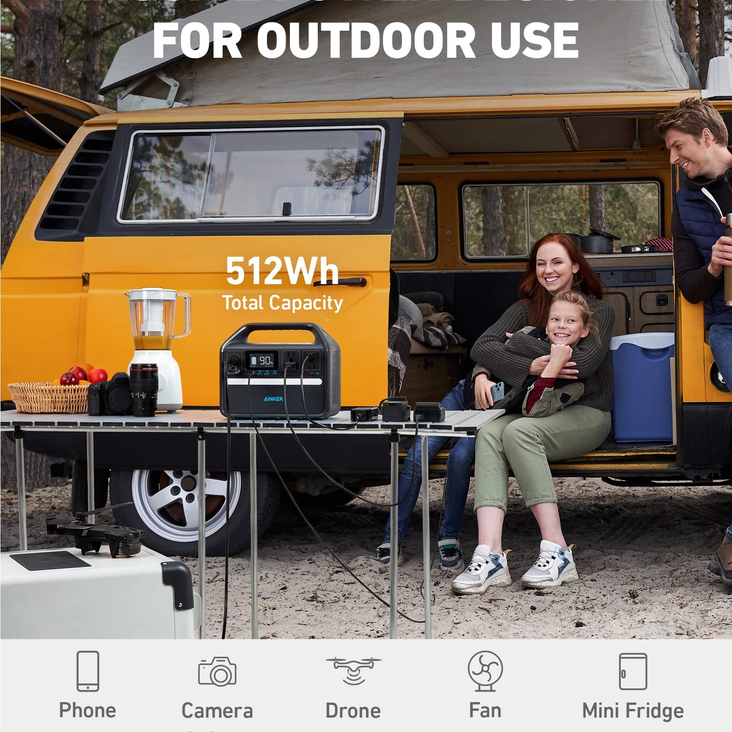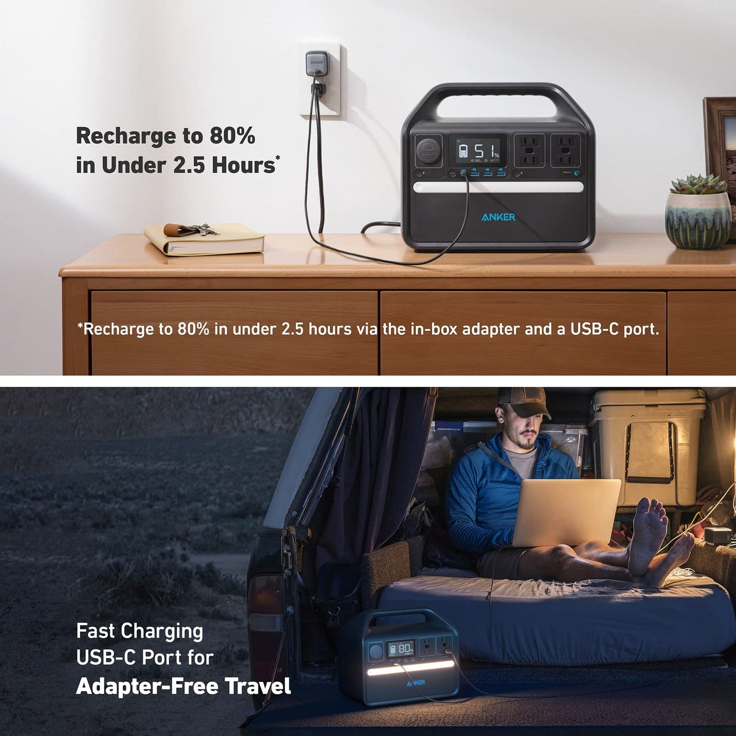 Anker 535 Portable Power Station, 512Wh Solar Generator (Solar Panel Optional) with LiFePO4 Battery Pack, 500W 9-Port Powerhouse, 4 AC Outlets, 60W USB-C PD Output, LED Light for Outdoor Camping, RV