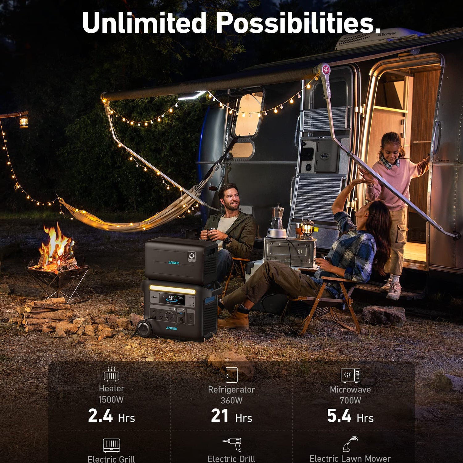 - Double the Power: Use 760 Expansion Battery (2048Wh) with Anker PowerHouse 767 (2048Wh) and scale up the battery capacity to 4096Wh.