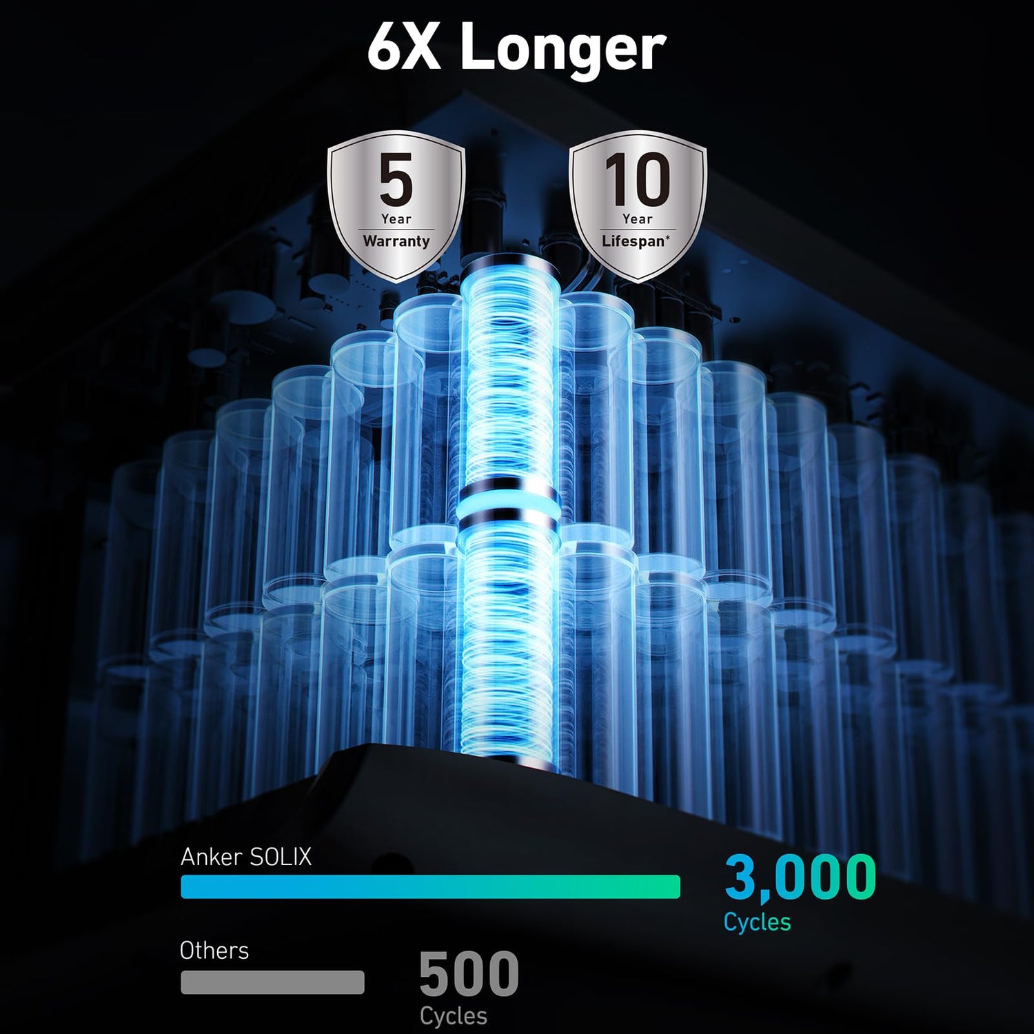 - infiniPower Durability for 10 Years: Anker SOLIX F2600 is built to last. It comes with LiFePO4 batteries, smart temperature control, industrial-grade components, and an impact-resistant design. So power every day for 10 years.