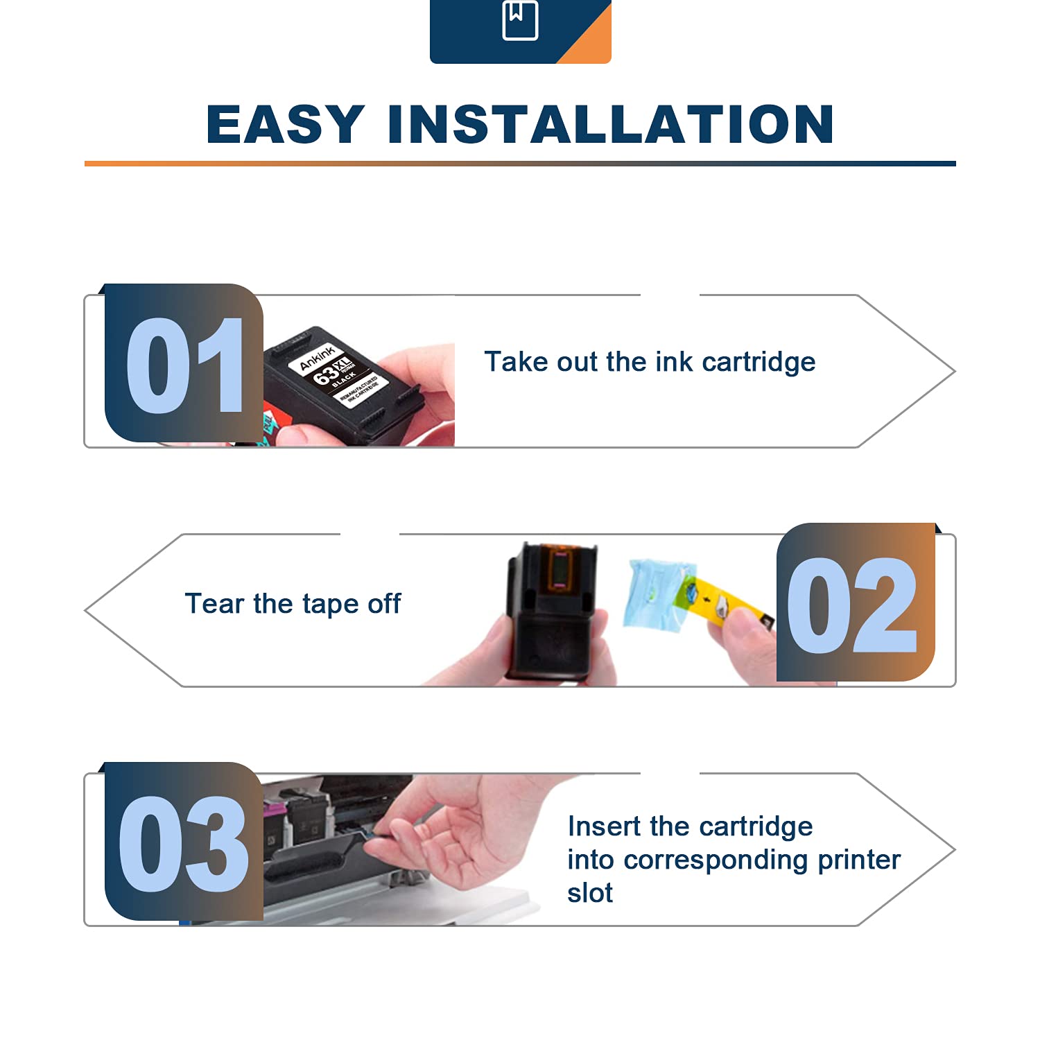 - Package includes 2 pack of 63XL black ink cartridges and 1 pack of 63XL tricolor ink cartridge