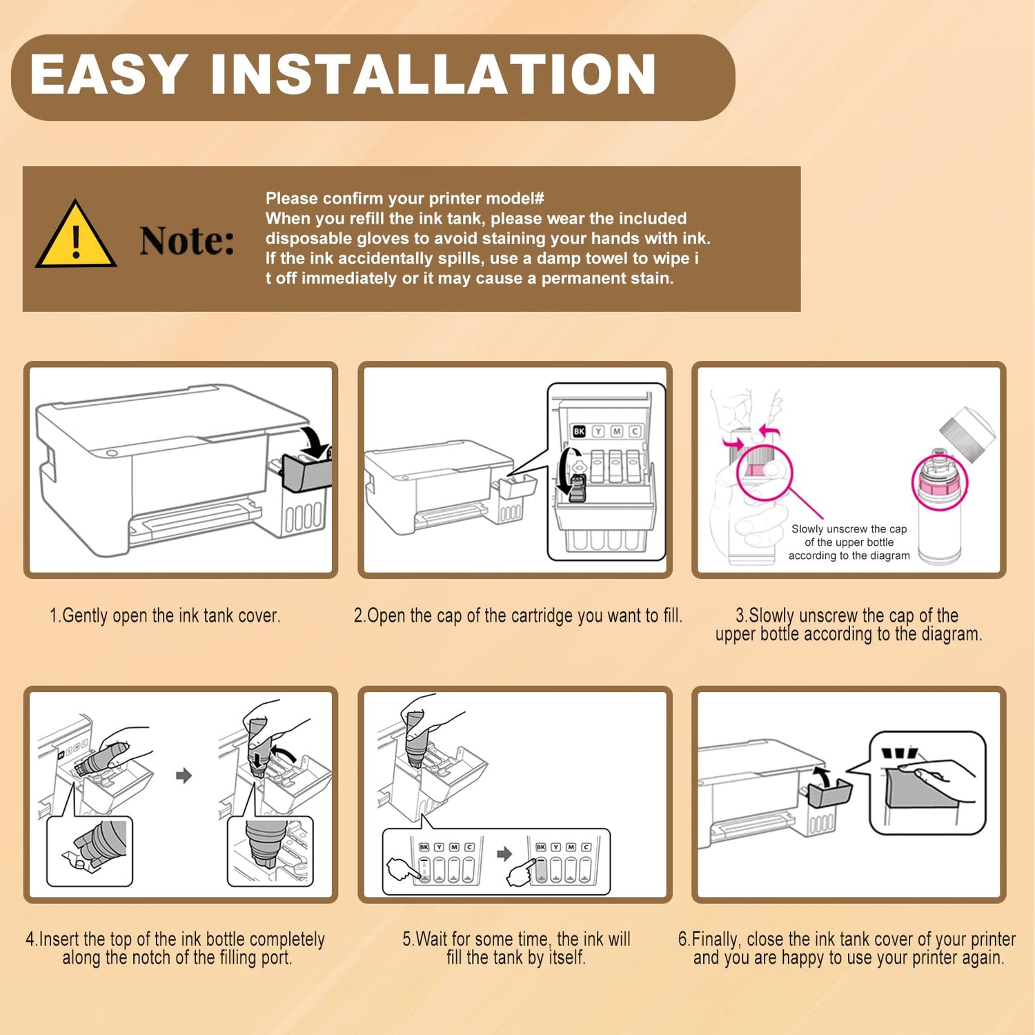 - 👍Improved auto-fill: No need for syringes with Auto-Fill & Auto-Stop. All you need to do is align the ink bottle with the ink inlet and it will automatically fill and stop. No ink spillage to affect your creativity.