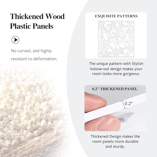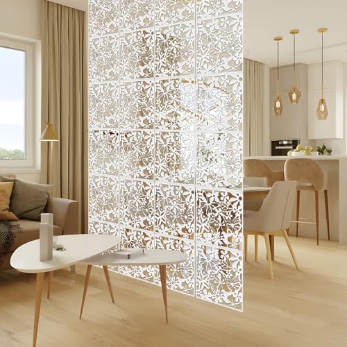 ANMINY 24 PCS Hanging Room Divider Flower Carving Pattern Panels Decorative Wall Screen Panel Hollow Out Design for Living Dining Room Bedroom Home Hotel Decor - White