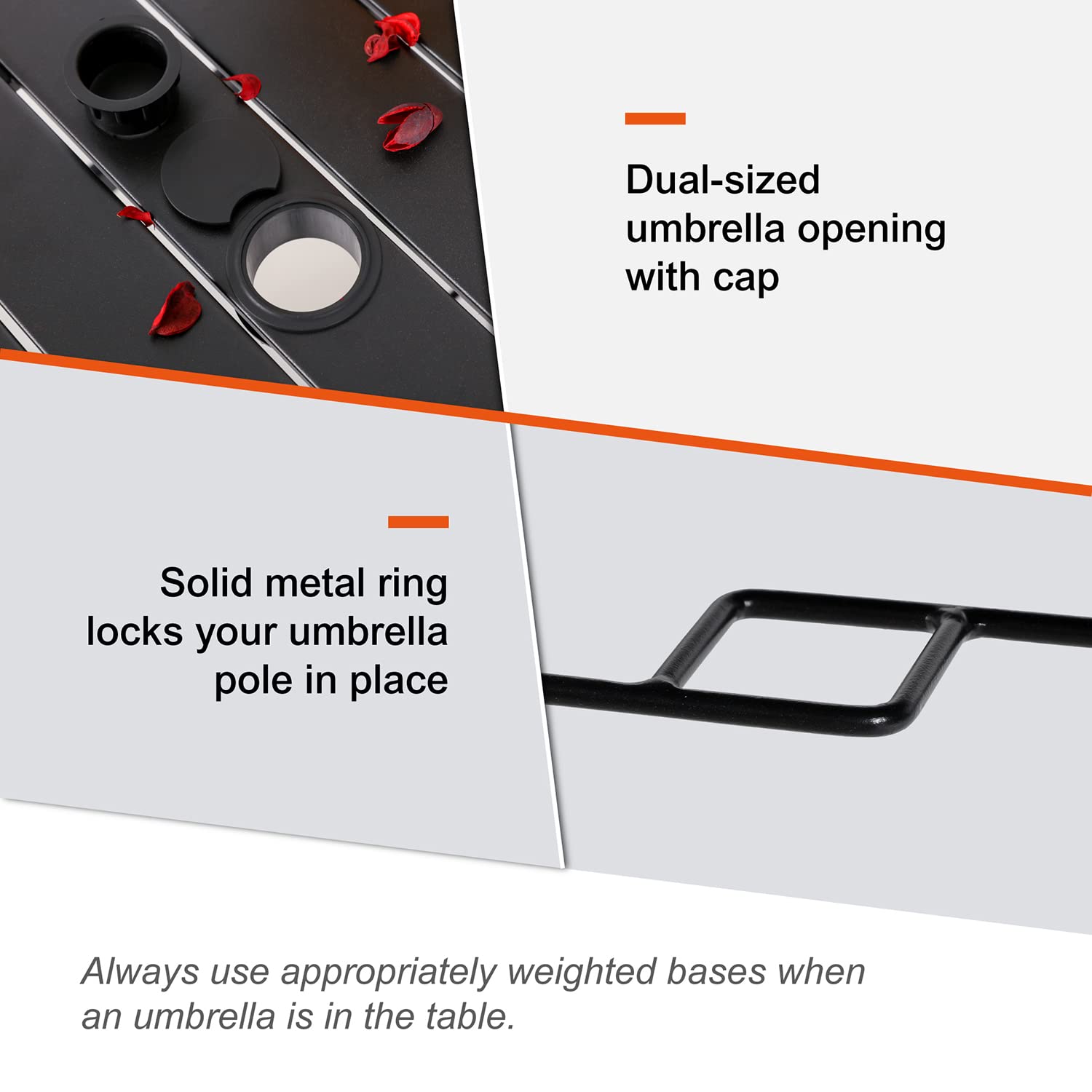 - PRACTICAL FEATURES: Table includes umbrella hole for shade options, curved leg design for stability, and accommodates up to 6 people comfortably