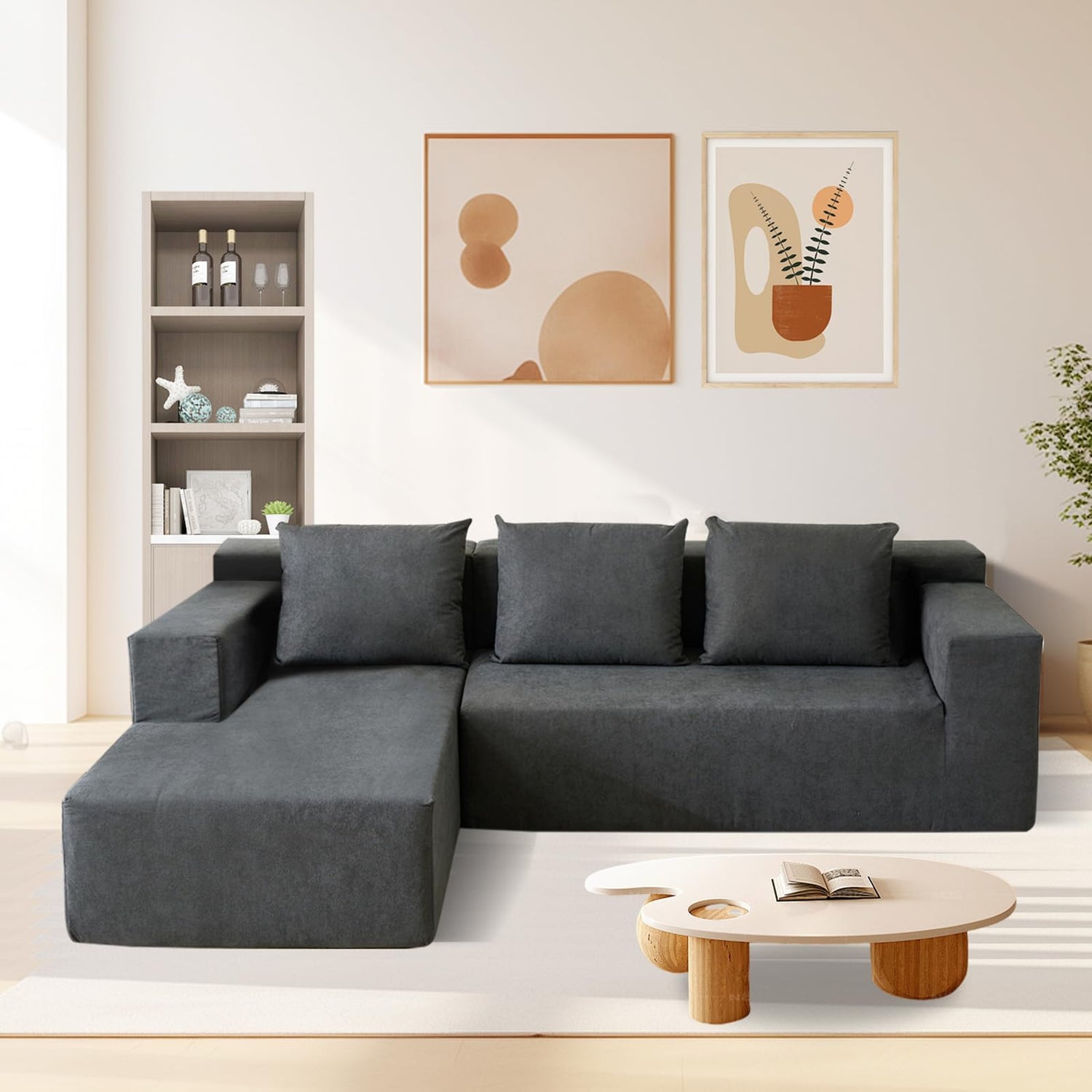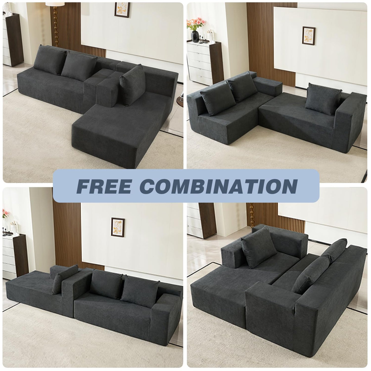 - 【Flexible Combination】This minimalist L-shaped sectional set can be easily rearrange the pieces to accommodate different spatial needs, offers the flexibility to create the perfect seating arrangement for your living room, adding flexibility and personalized style to your living space.