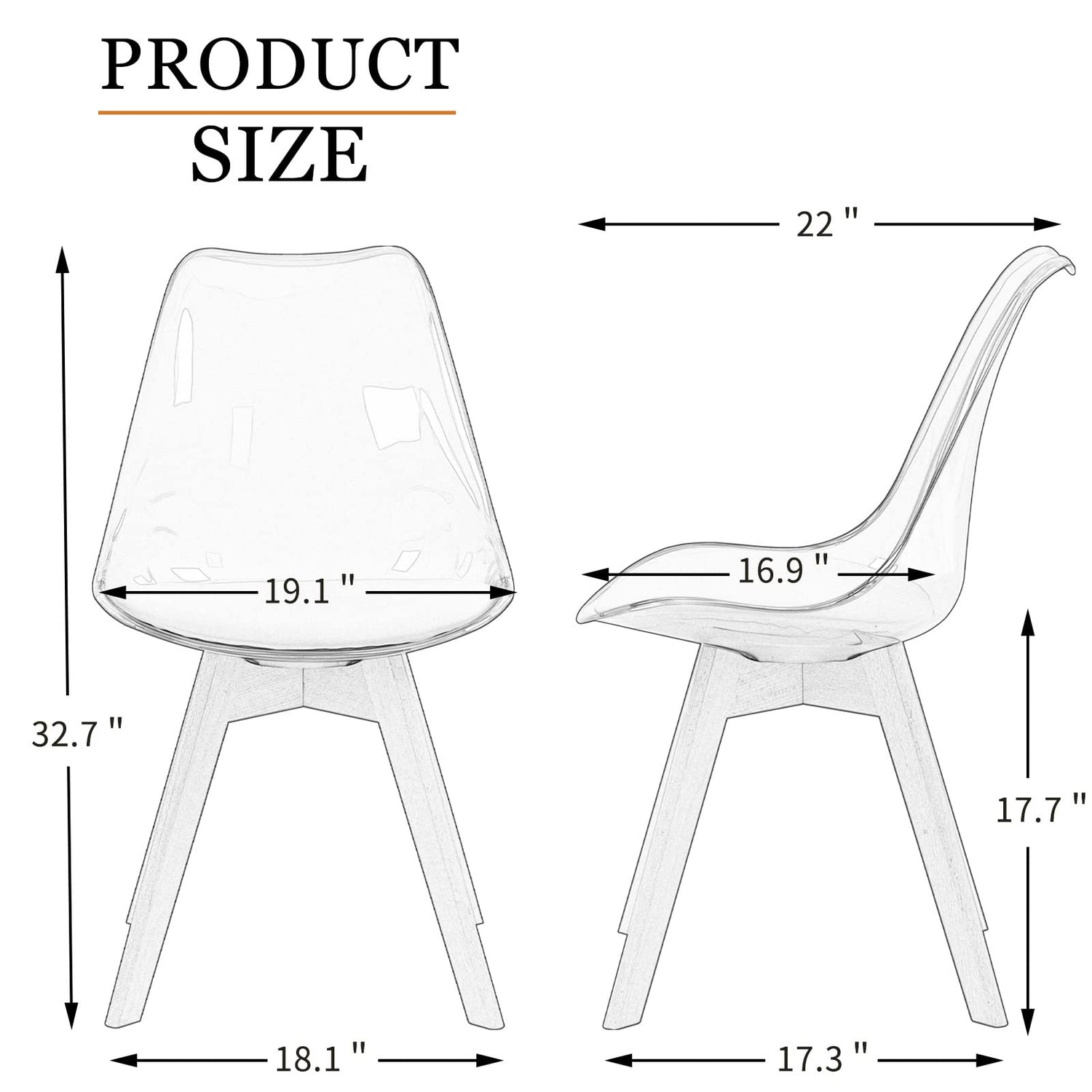 - STRONG & DURABLE: The clear dining chair is made of environmentally friendly acrylic, foam padding and high-quality beech wood legs, all of which contribute to the high stability and durability of the armless dining chair; maximum load: 220 lbs.