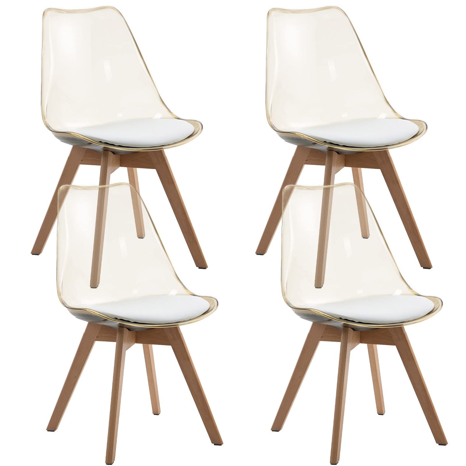 ANOUR Dining Chairs Set of 4, Modern Kitchen Clear Acrylic Accent Dinner Chairs with PU Leather Cushions Seat and Solid Beech Legs, Suitable for Living Room and Bedroom