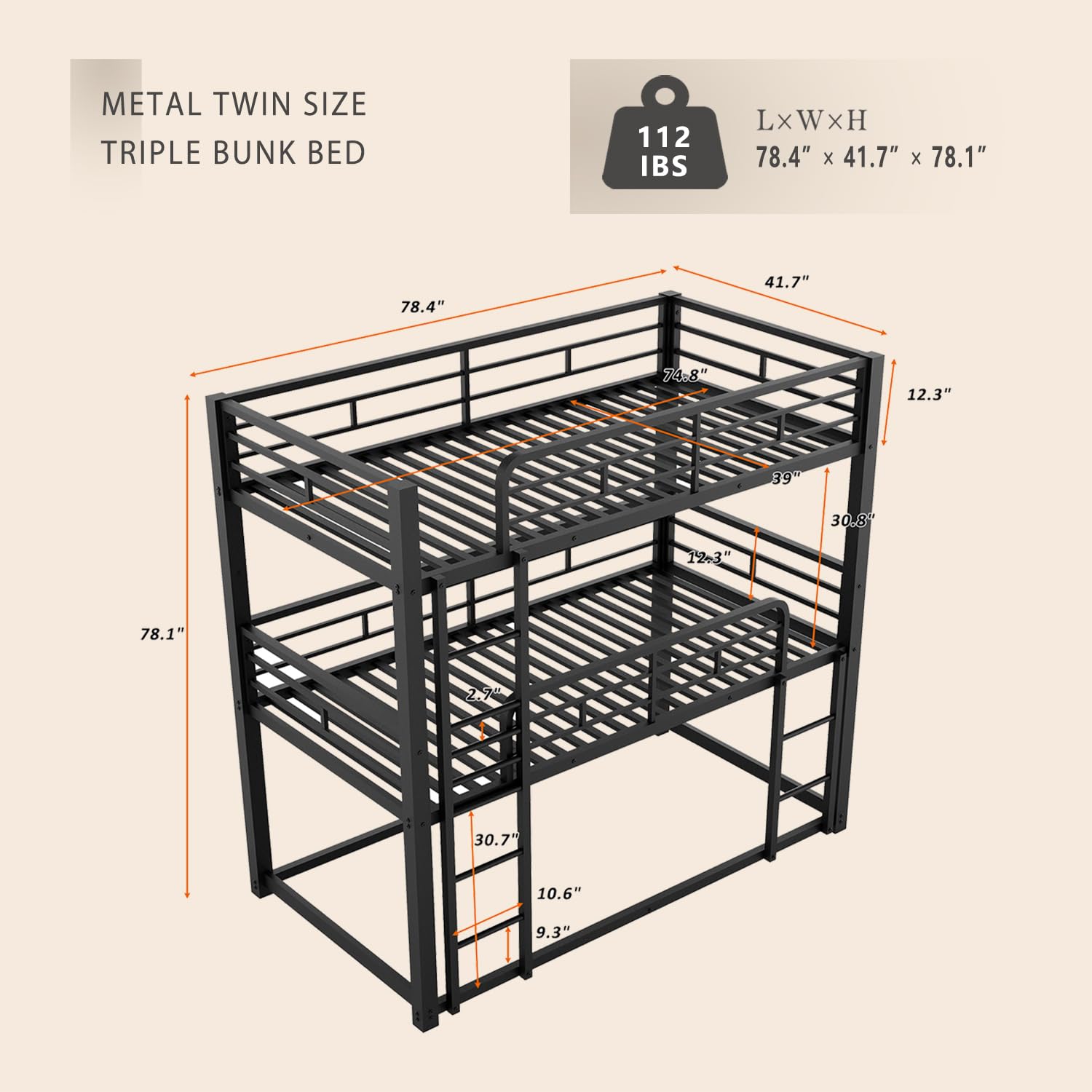 AnoYishev Triple Bunk Bed for Kids,Twin Over Twin Over Twin Metal Bunkbeds with Ladder for Kids Teens Bedroom, No Box Spring Needed, Easy Assembly (Black)