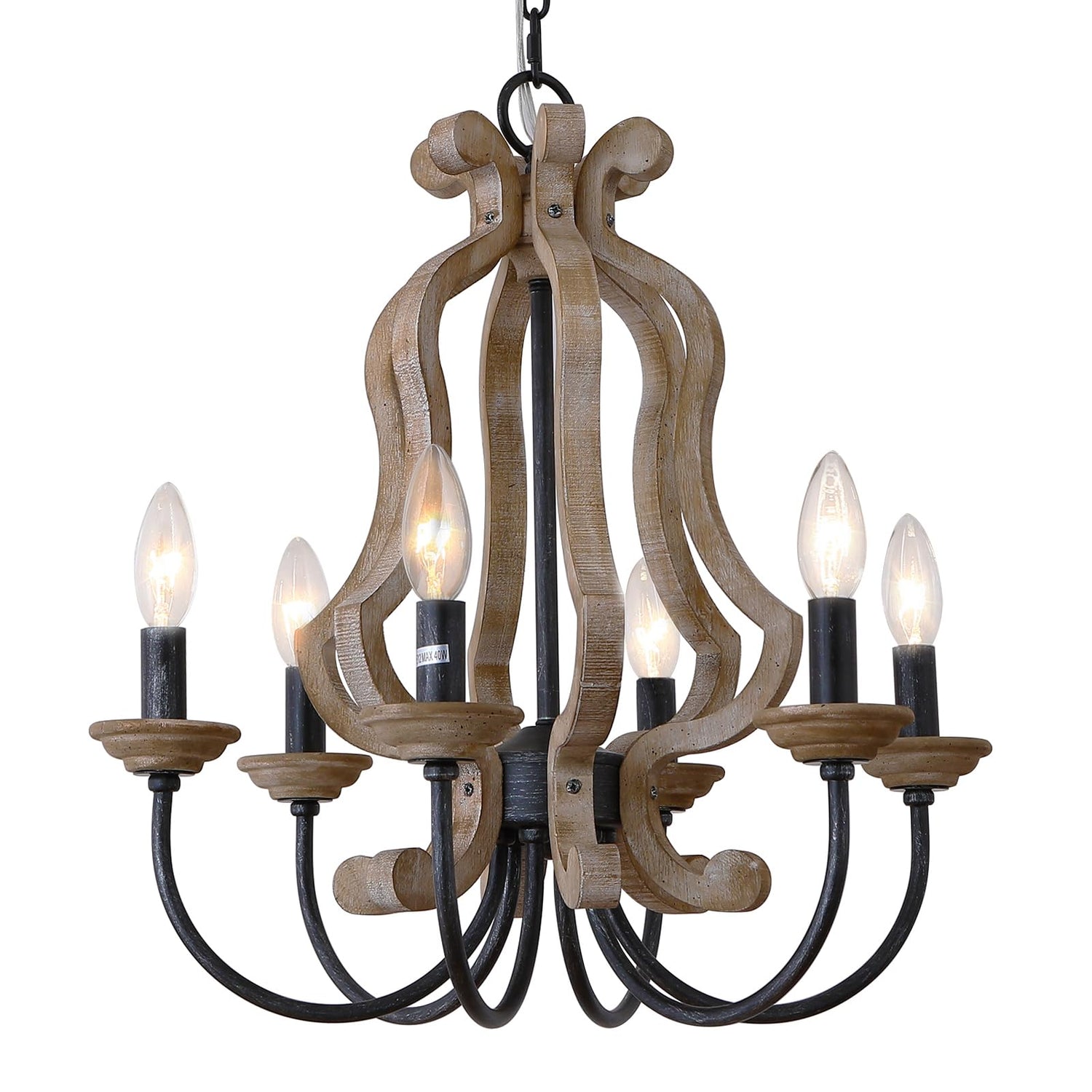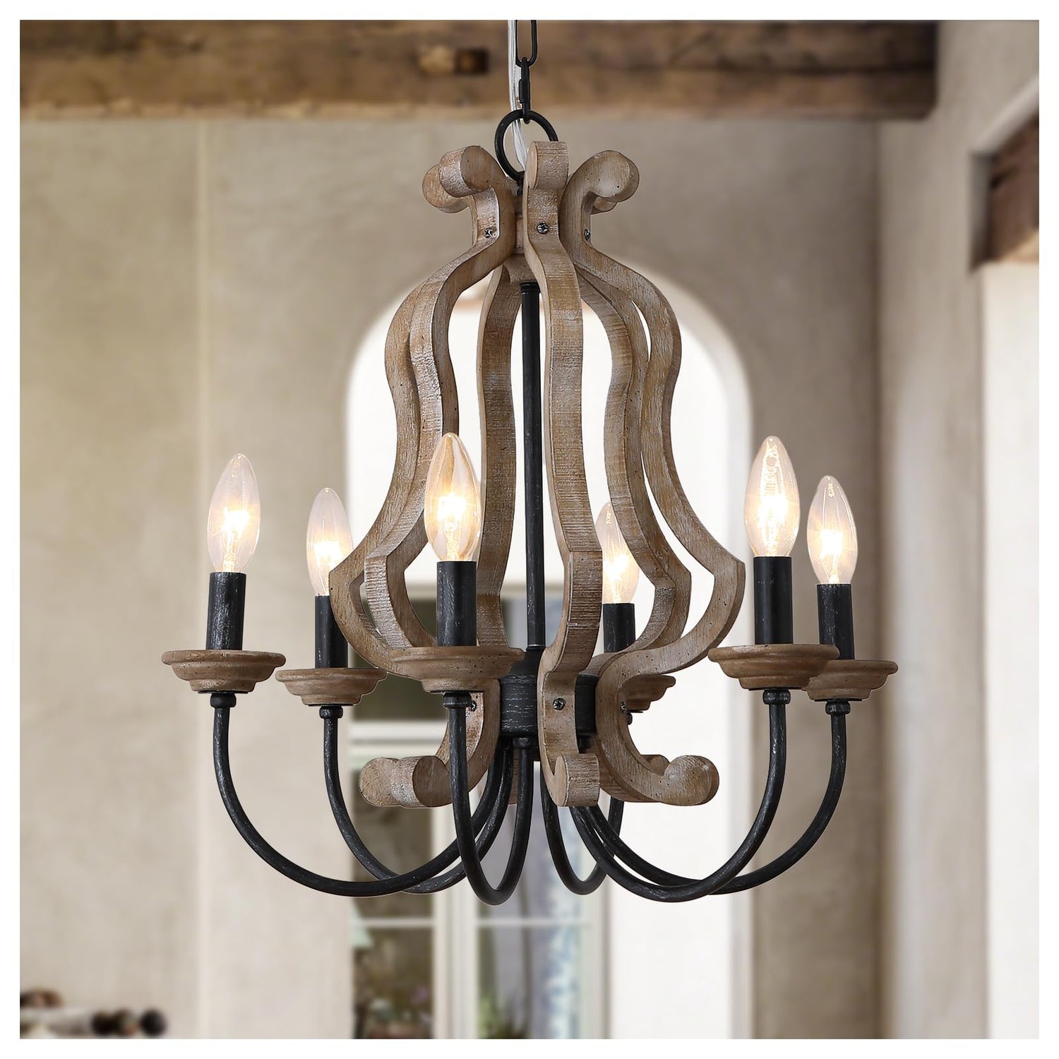 - 【Rustic Farmhouse Design】6-lights farmhouse wood chandelier crafted from aged solid wood and complemented by black finish metal accents, it exudes rustic charm and timeless elegance, making it perfect for rustic and traditional interiors.