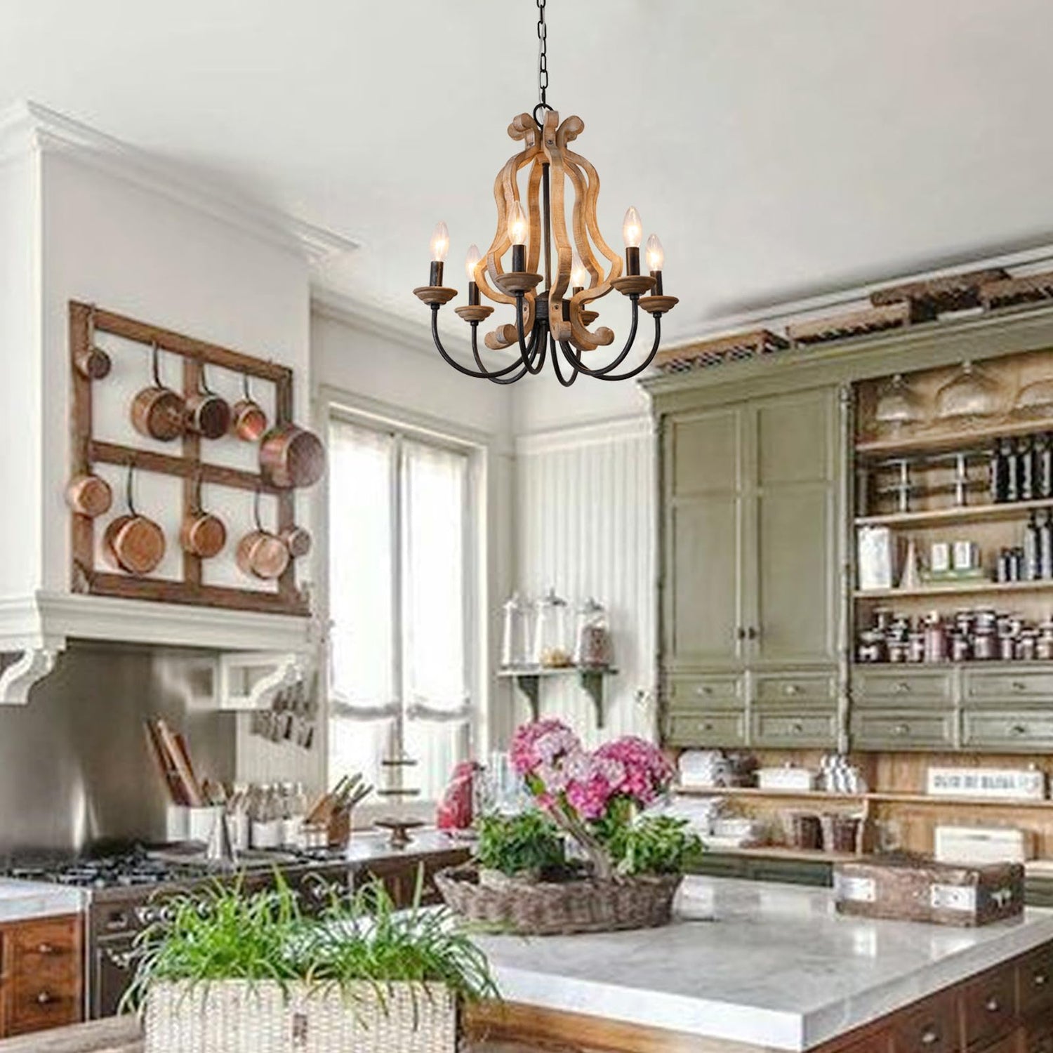 This wood chandelier isn't confined to one room. Its versatile design makes it suitable for a wide range of spaces, from living rooms and dining areas to bedrooms, kitchens, and entryways. Transform any room into a captivating oasis of charm and elegance with this timeless lighting fixture.