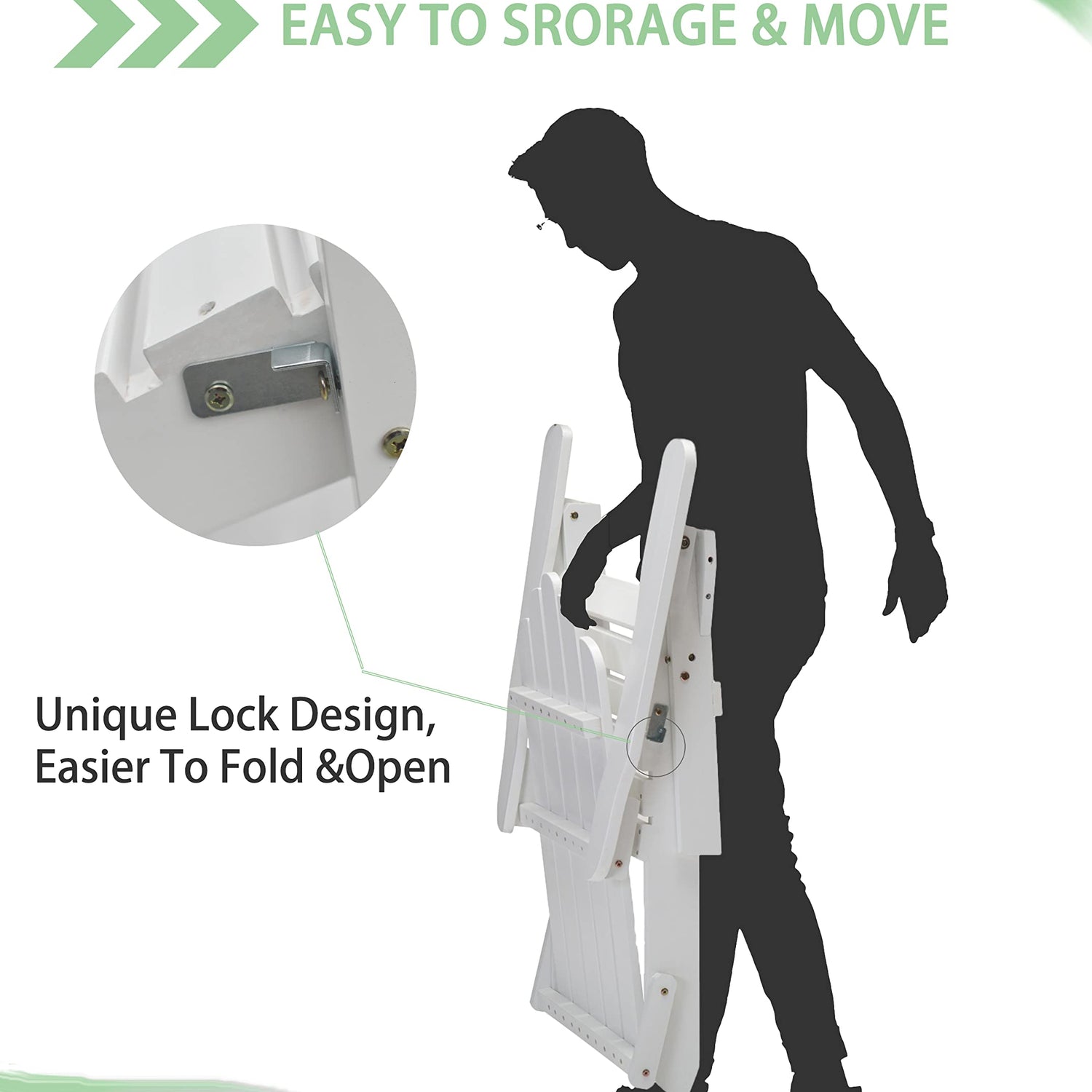 - SAFETY FOLDING ADIRONDACK CHAIR – Equipped with a safety lock to prevent accidental folding, this chair ensures secure seating. Simply lock it when in use and unlock it to fold. The foldable design makes it easy to move the chair indoors or outdoors, perfect for the beach, lawn, poolside, balcony, deck, or port-side.