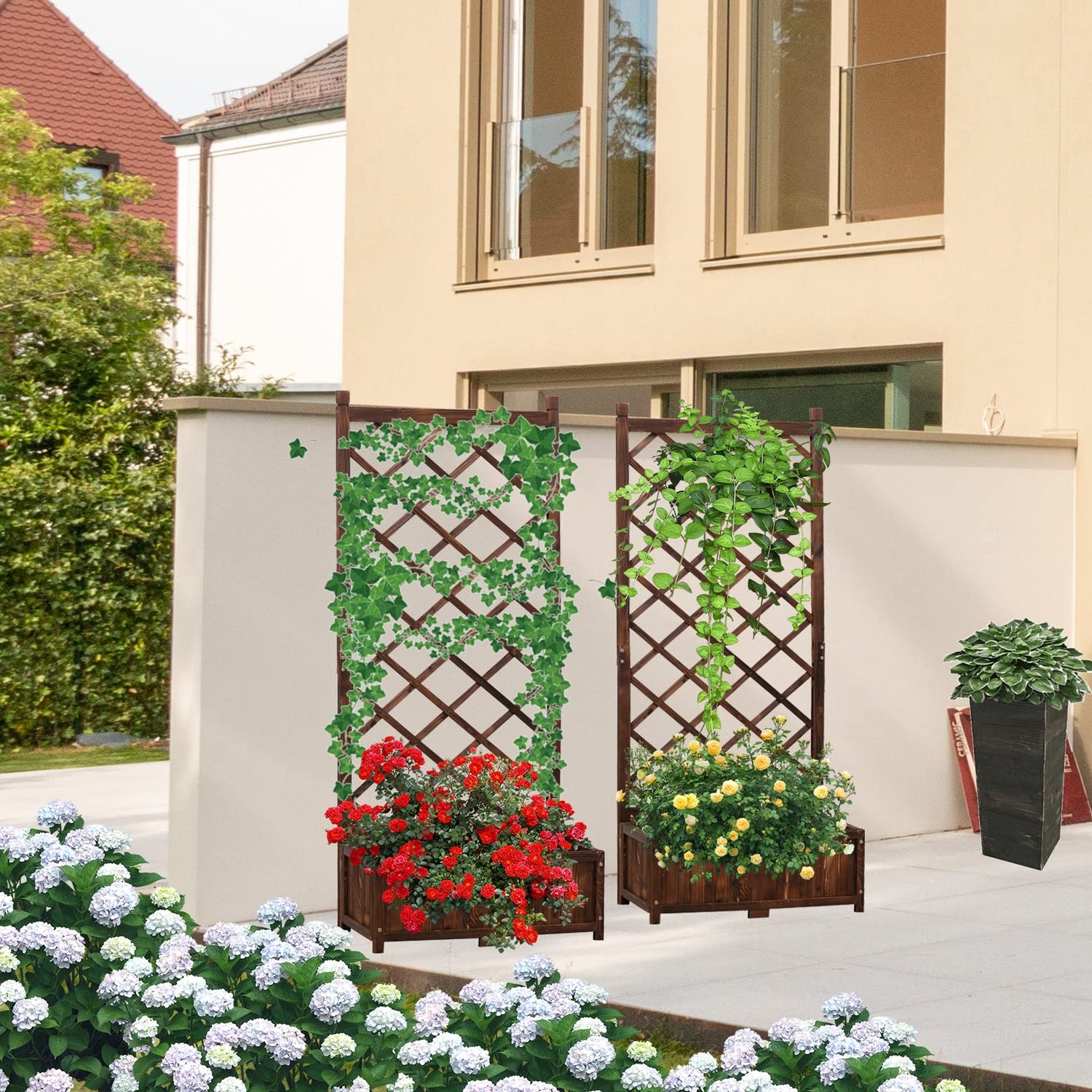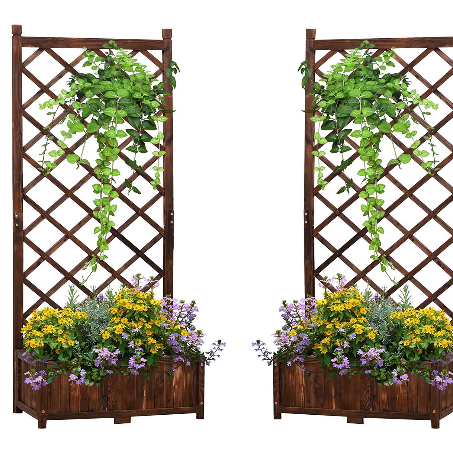 Anraja Raised Garden Bed Planter with Trellis Outdoor Wood Box 67in Set of 2 Flower Standing Planter Box Privacy Lattice Panels with Legs for Patio Porch w/Drainage Holes
