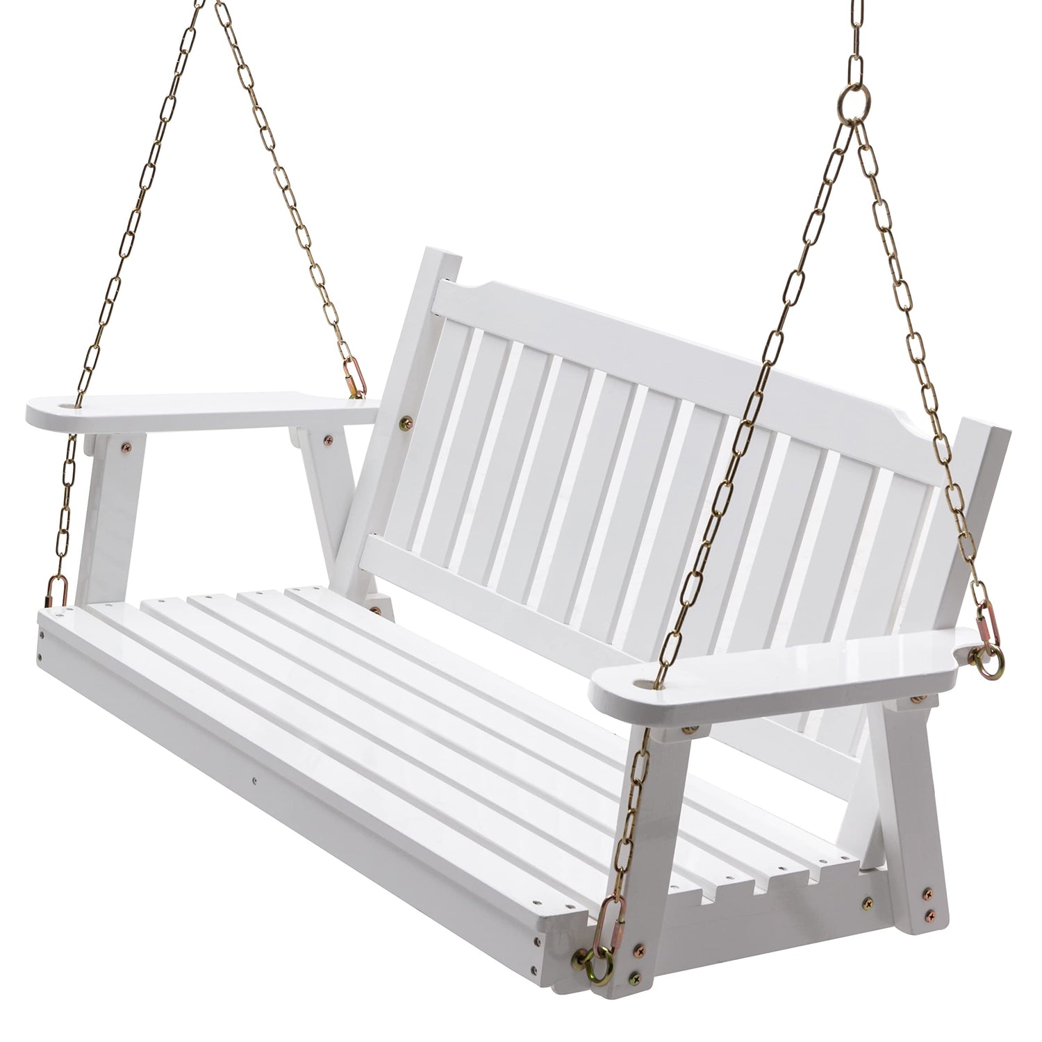 Anraja Wooden Porch Swing 2-Seater, Bench Swing with Hanging Chains, Heavy Duty 800 LBS, for Outdoor Patio Garden Yard,4 Ft,White