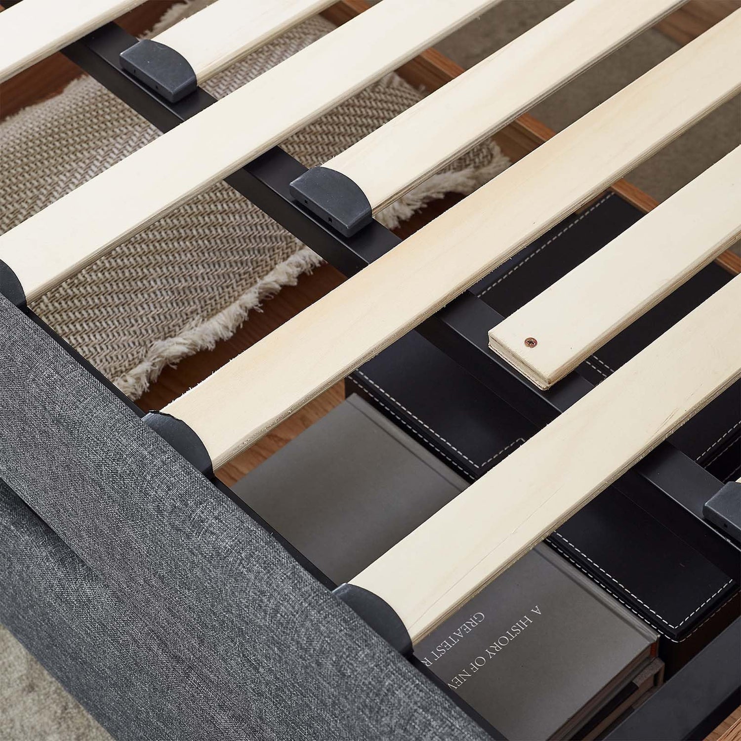 - Modern Linen Trundle Bed: Our bed with trundle features hard-wearing linen fabric. The backrest is designed with deep buttons tufted and is matched with diamond-shaped wiring to create an elegant style. The soft foam-filled headboard creates a comfortable leaning feeling. With its simple design and stylish appearance, which are suitable for any home decoration