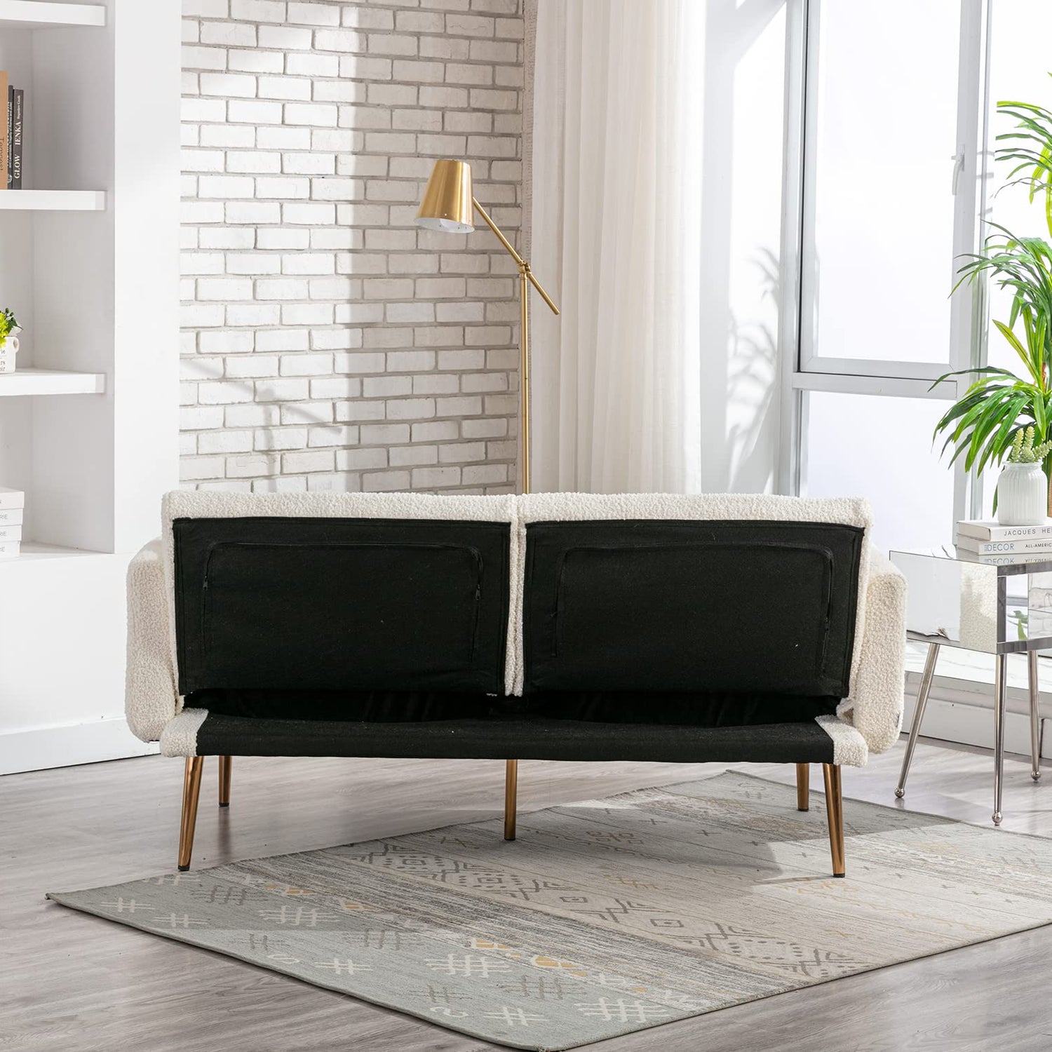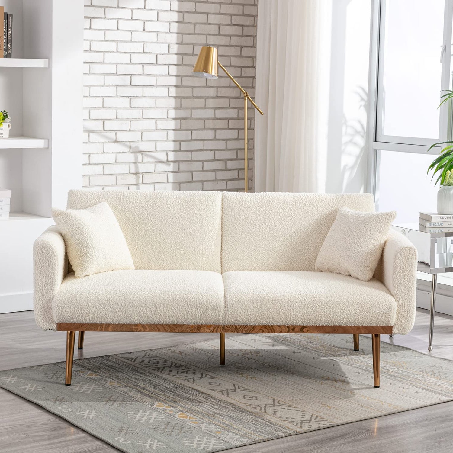 - ►【Stylish & Chic Design】The teddy fabric surface and the rose golden metal legs make this convertible sofa look elegant and stylish. The surface of the backrest and seat cushion adopts a diamond cutting design, making the sofa more chic. Two soft pillows can make the sofa more distinctive.