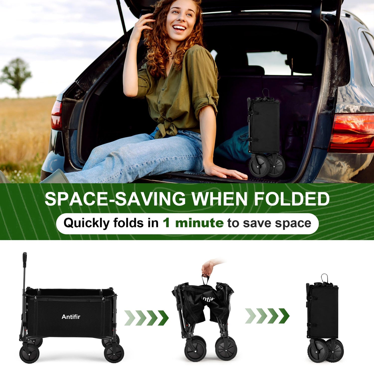 Antifir Collapsible Wagon with Large Capacity, Utility Wagons Carts Heavy Duty Foldable, Portable Folding Wagon with All-Terrain Wheels for Grocery Gardening Sports Shopping Fishing (Black)