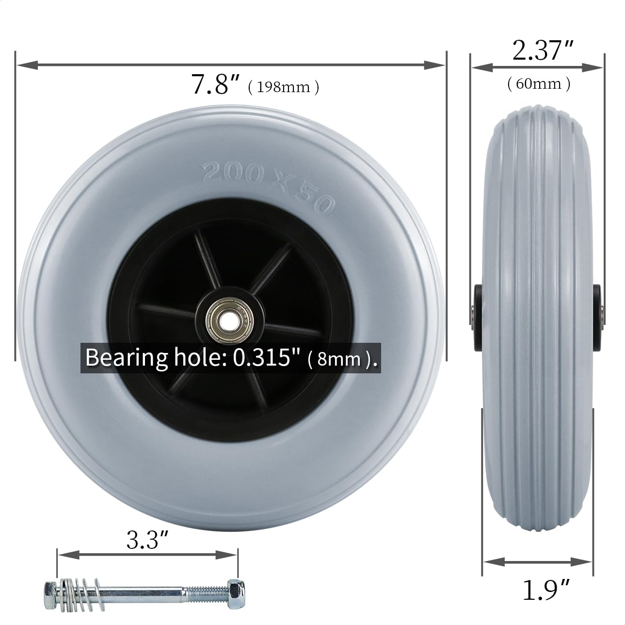 - 【Wheel Model】8 inch, 8"x2" (200x50). Bearing hole: 0.315" (8mm). Bolt length: 3.3".