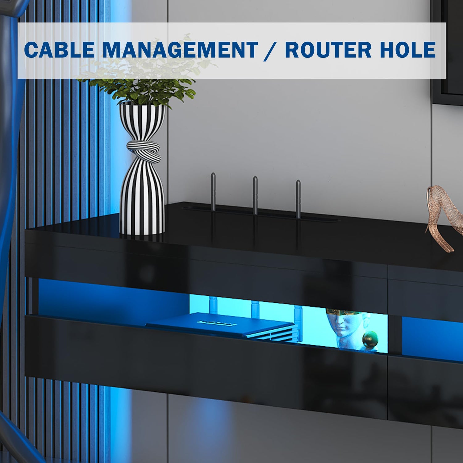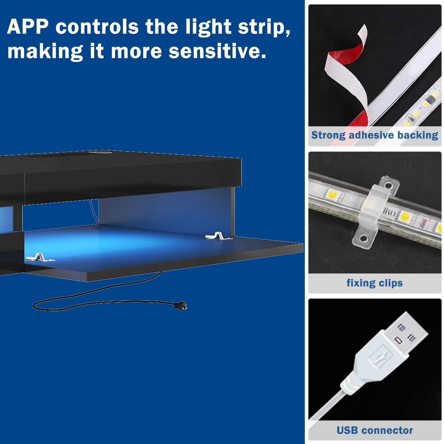 - 【Cool Smart LED Lights】The floating TV stand provides millions of colors and has 29 scene modes, select the light color and mode according to your needs and scenes through APP control, bringing you different visual experiences and living room fun, designed to create a better gaming or party atmosphere, matching your mood or activity. Beautiful LED lights will make your home look more fashionable, add a soft and comfortable atmosphere, and enhance your entertainment experience.