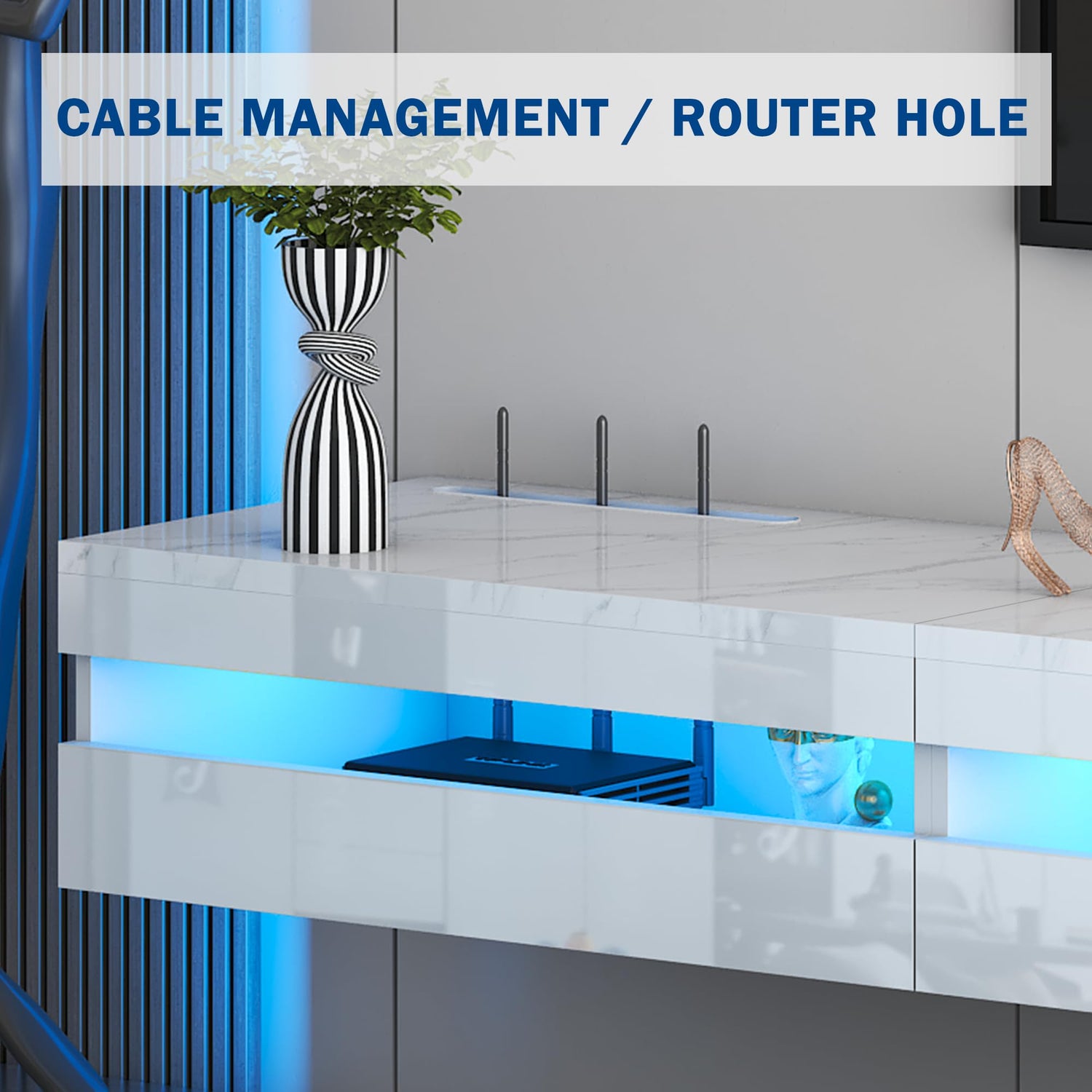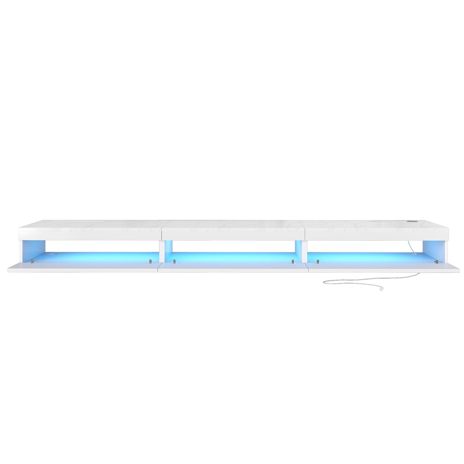 - 【Cool Smart LED Lights】The floating TV stand provides millions of colors and has 29 scene modes, select the light color and mode according to your needs and scenes through APP control, bringing you different visual experiences and living room fun, designed to create a better gaming or party atmosphere, matching your mood or activity. Beautiful LED lights will make your home look more fashionable, add a soft and comfortable atmosphere, and enhance your entertainment experience.