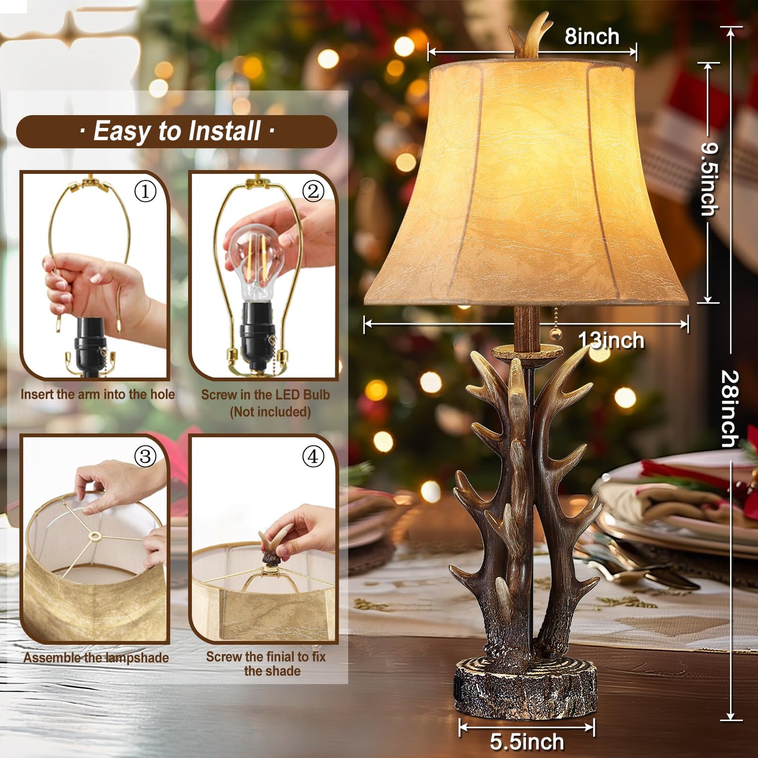 - 2. Safe & Easy to Assemble: The cabin antler table lamps made of heavy-made resin base which is safe and reliable, making it a perfect choice for Farmhouse, Traditional, Cottage, Rustic, Office, Living Room, Family Room, Dining Room, Bedroom, Hallway, Foyer. The bedside table lamp comes with all the necessary installation accessories and a detailed instruction manual, though the bulb is not included. By following the provided instructions, you can effortlessly assemble the farmhouse table lamp.