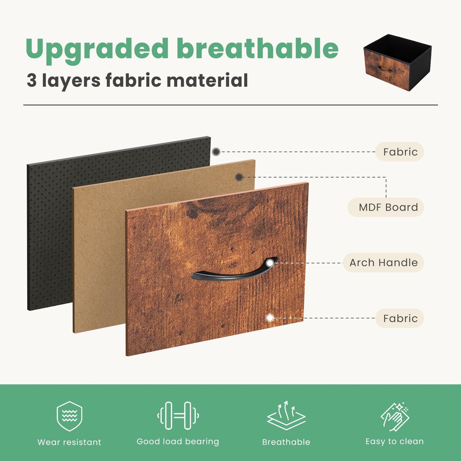 - 【Safe & Sturdy】 This chest of drawers uses a thickened metal frame to keep the fabric dresser stable, with 4 adjustable feets to protect your floor from scratches, and you can adjust the balance of the dresser in small areas. Using the anti-tilt device, an auxiliary feature can be added if the dresser is attached to the wall, as it prevents falling caused by uneven floors or children climbing.