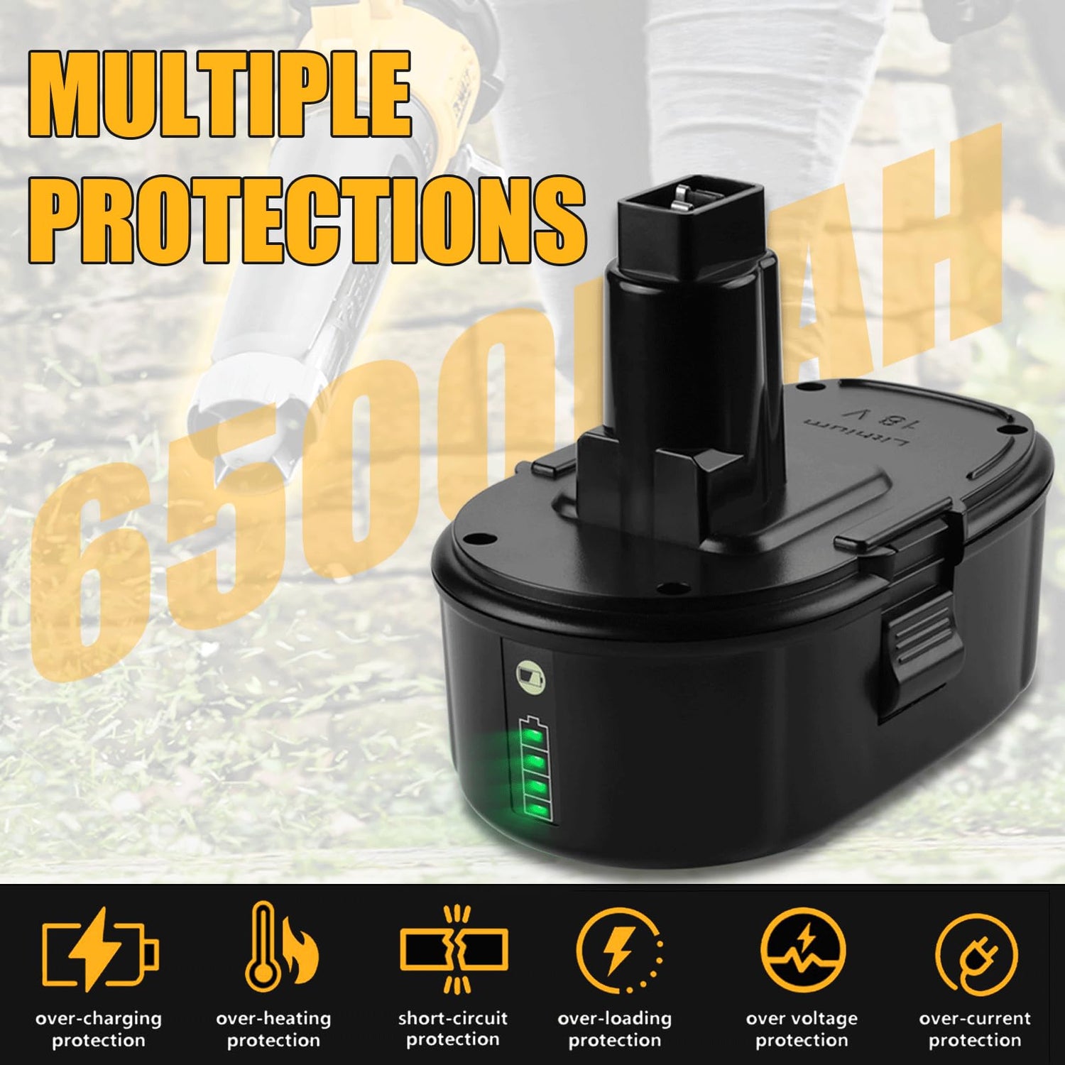 - 【Backup Battery】The extra replacement 6.5Ah 18 volt dewalt batteries is a necessity for you. It makes work faster, allowing you to always keep working instead of waiting for the one battery to recharge.