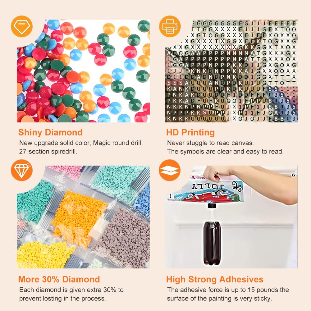 - HIGH-QUALITY MATERIAL - Waterproof canvas and non-fading drills make the finished project to keep for more than 20 years. Perfect to decorate your living room, bedroom, kitchen, or anywhere you want to match different decoration style.And it is a perfect gift for birthday and festivals