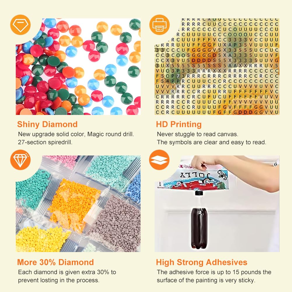 - HIGH-QUALITY MATERIAL - Waterproof canvas and non-fading drills make the finished project to keep for more than 20 years. Perfect to decorate your living room, bedroom, kitchen, or anywhere you want to match different decoration style.And it is a perfect gift for birthday and festivals