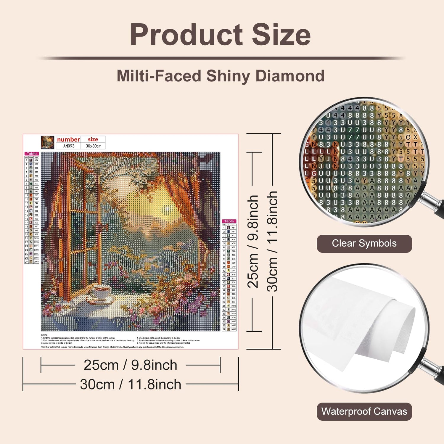 - PACKAGE & SIZE - Diamond art kits package comes with linen canvas, diamonds, tools set, clay. Please note that full diamond painting doesn't include the frame. 12*12inch is the whole canvas size, including blank space. If you want more styles, please click Anuver