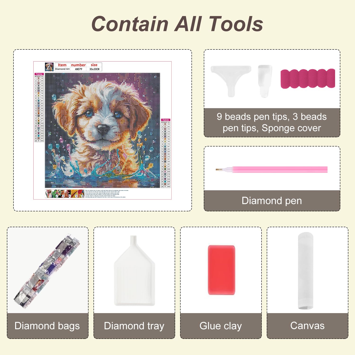 - FULL DRILL - Dog diamond painting kits for adults, the beads cover the whole diamond painting picture and make the picture more glitter, If you have enough time and patience and like challenging project, this is totally for you
