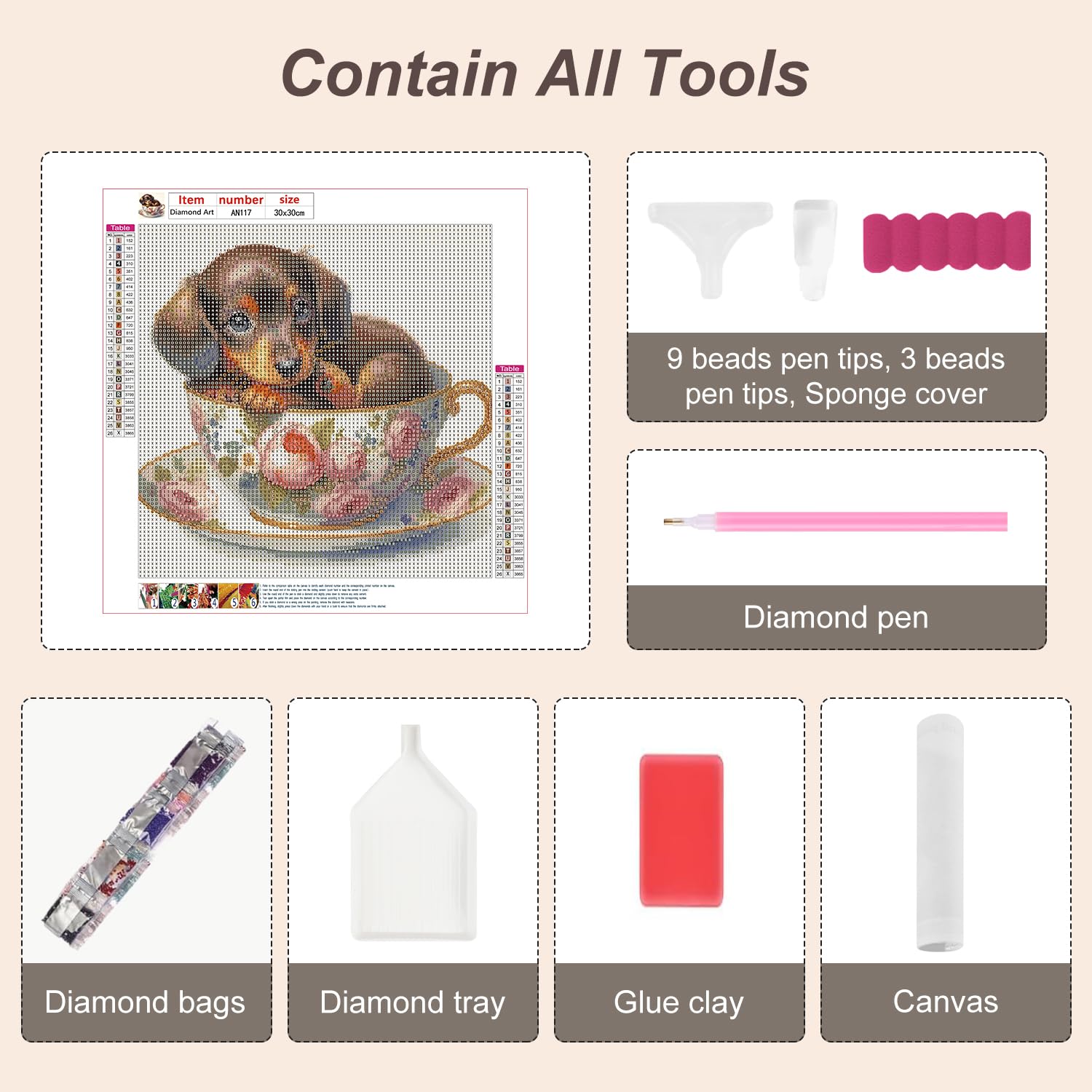 - PACKAGE & SIZE - Diamond art kits package comes with linen canvas, diamonds, tools set, clay. Please note that full diamond painting doesn't include the frame. 12*12inch is the whole canvas size, including blank space. If you want more styles, please click Anuver