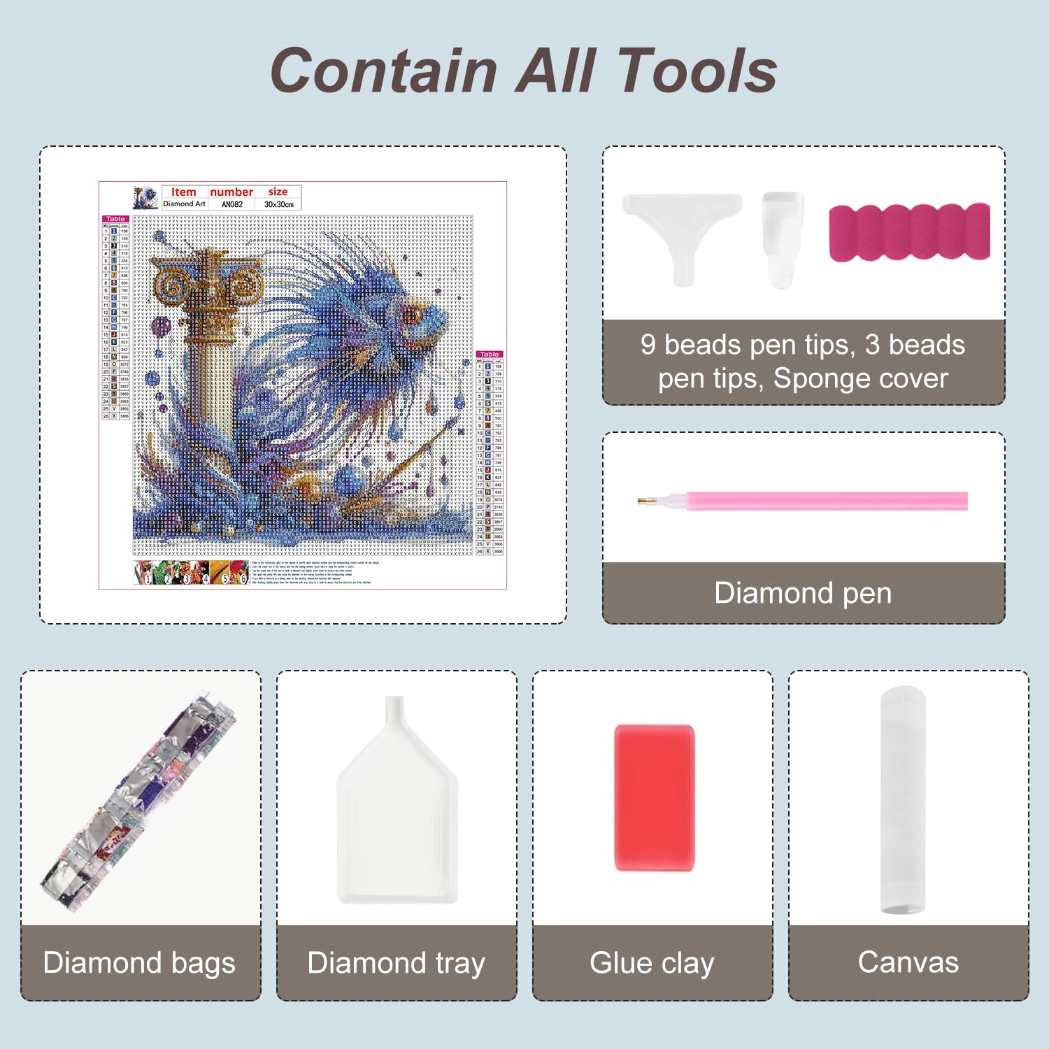- PACKAGE & SIZE - Diamond art kits package comes with linen canvas, diamonds, tools set, clay. Please note that full diamond painting doesn't include the frame. 12*12inch is the whole canvas size, including blank space. If you want more styles, please click Anuver