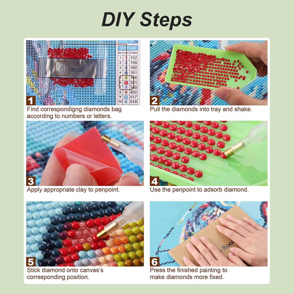 - PACKAGE & SIZE - Diamond art kits package comes with linen canvas, diamonds, tools set, clay. Please note that full diamond painting doesn't include the frame. 12*12inch is the whole canvas size, including blank space. If you want more styles, please click Anuver