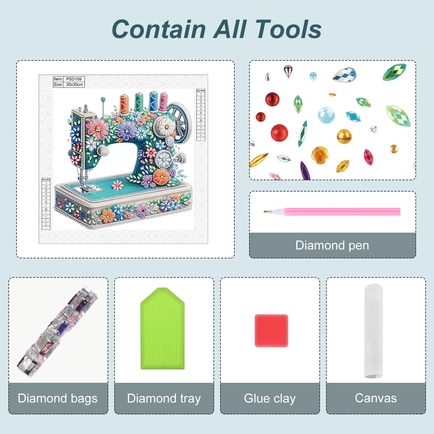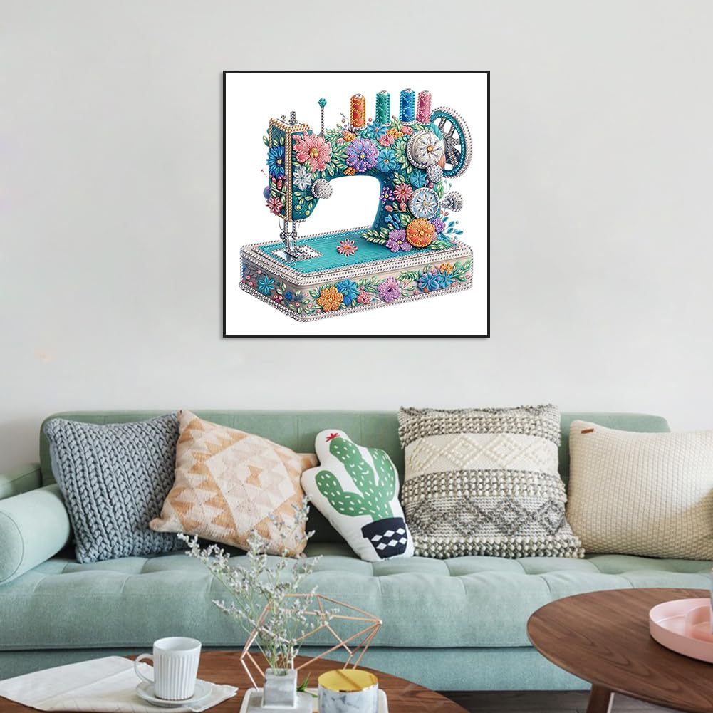Anuver Sewing Machine Diamond Painting Kits for Adults, 5D Special Shape Crystal Rhinestones Diamond Painting for Beginners, Diamond Art Kits for Home Wall Decoration, 12×12 Inch