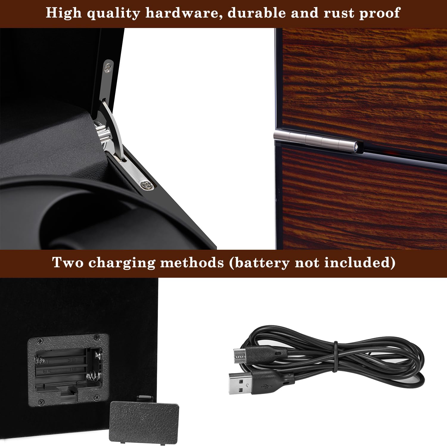 - PROPERTIES: Our watch shaker has 2 type charger, USB or 2 x AA battery (not Included). Do not use the battery and AC power simultaneously,And the size is 5.91”L x 5.91”W x 6.69”H,