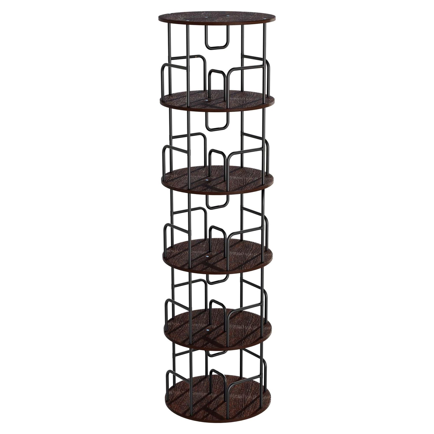 Anwick 5 Tier Rotating Bookshelf, 360° Display Spinning Bookshelf Tower, Round Swivel Bookcase for Bedroom, Living Room, Office, Space Saving (Brown)