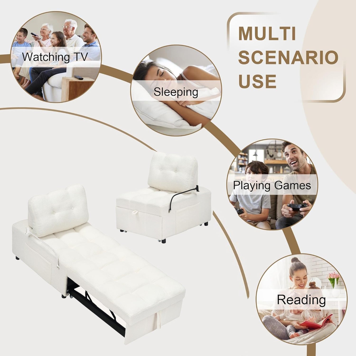 - CONVERTIBLE PULL OUT SOFA BED:This adjustable sofa or twin bed and lounge chair in one,can be easily converted into 3 different modes according to your needs.whether it is for daily rest,overnight guests or temporary office work,just simply adjust the angle of the back to meet diversified living scenarios