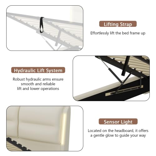 - Modern Storage Bed Frame with Hydraulic Storage System : Murphy Bed Queen; Ultimate your limited space with hydraulic bed featuring a lift-up bed board. Unleash the hidden potential of your bedroom as the bed board effortlessly lifts, revealing ample storage space underneath. Maximize every inch of your bedroom with lift up bed storage solutions. Enjoy the benefits of a tidy and serene space