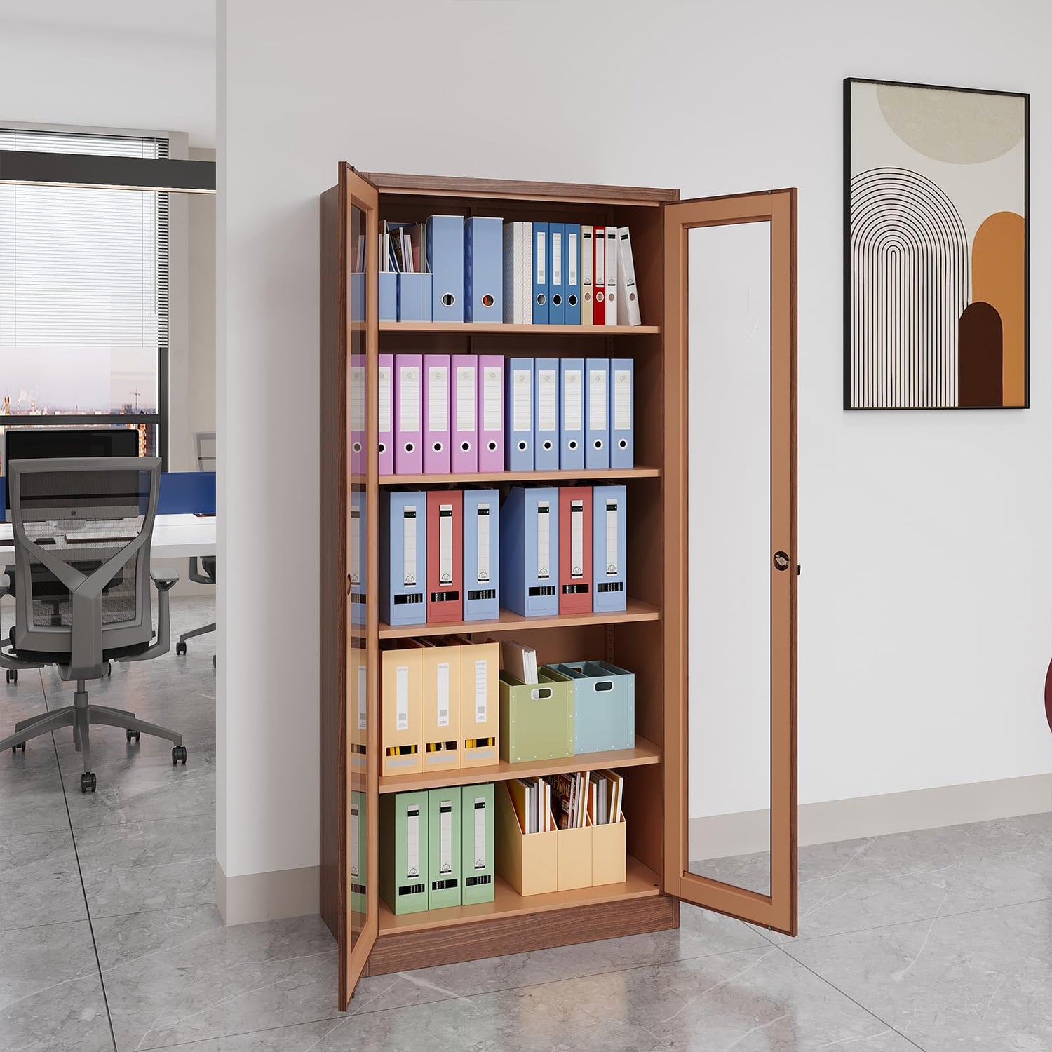 - 【Glass Display Cabinet】The display cabinet is 15.8 inches deep x 31.5 inches wide x 71 inches high with 4 adjustable shelves and has extra large storage space to help you place more products. The display cabinet is equipped with a glass door, so the items inside can be seen at a glance, which is simple and elegant.