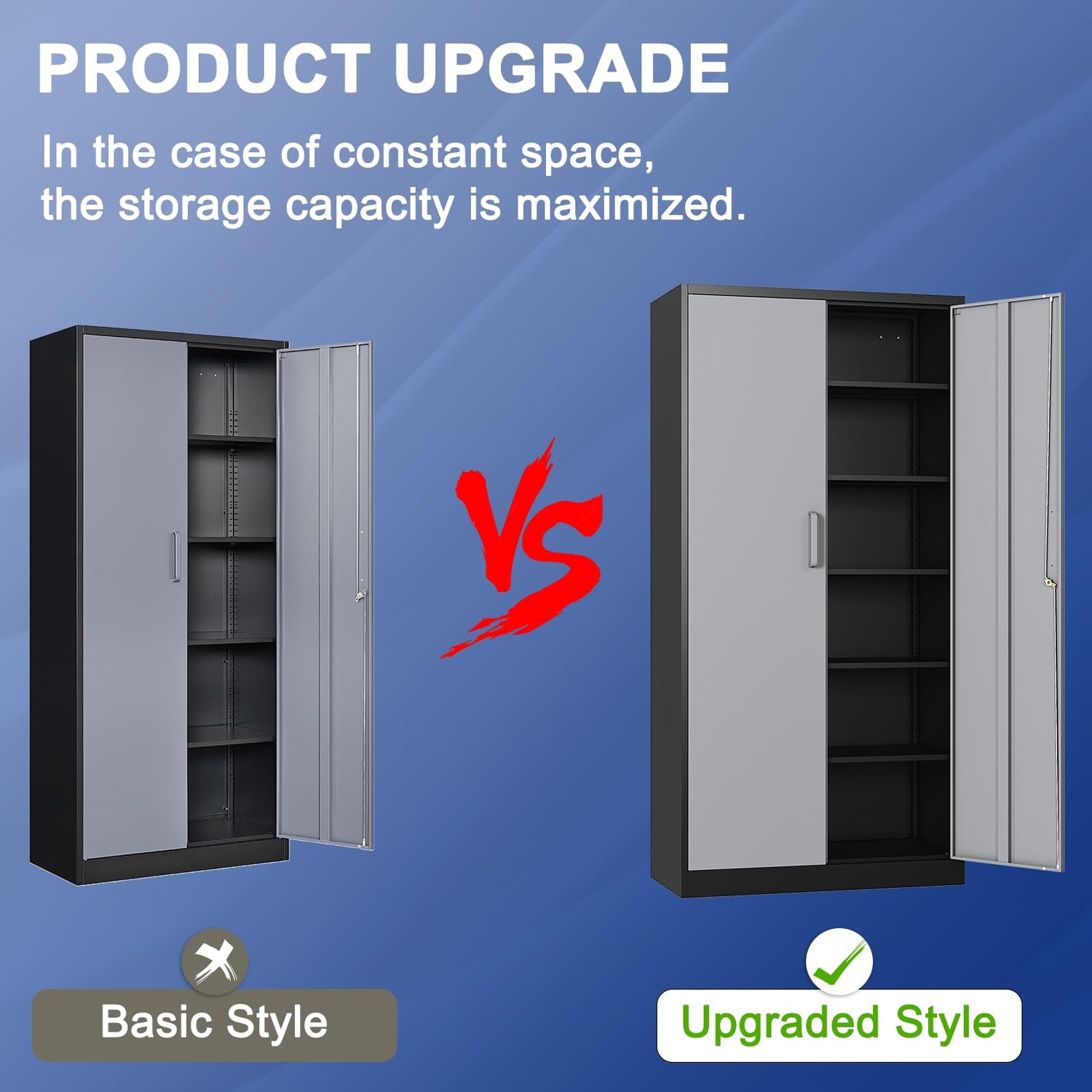 Anxxsu Metal Garage Storage Cabinet, 71" Locking Storage Cabinet with 2 Doors and 4 Adjustable Shelves, Lockable Metal Cabinet for Office,Home,Garage,Gym,School(Gray Black)
