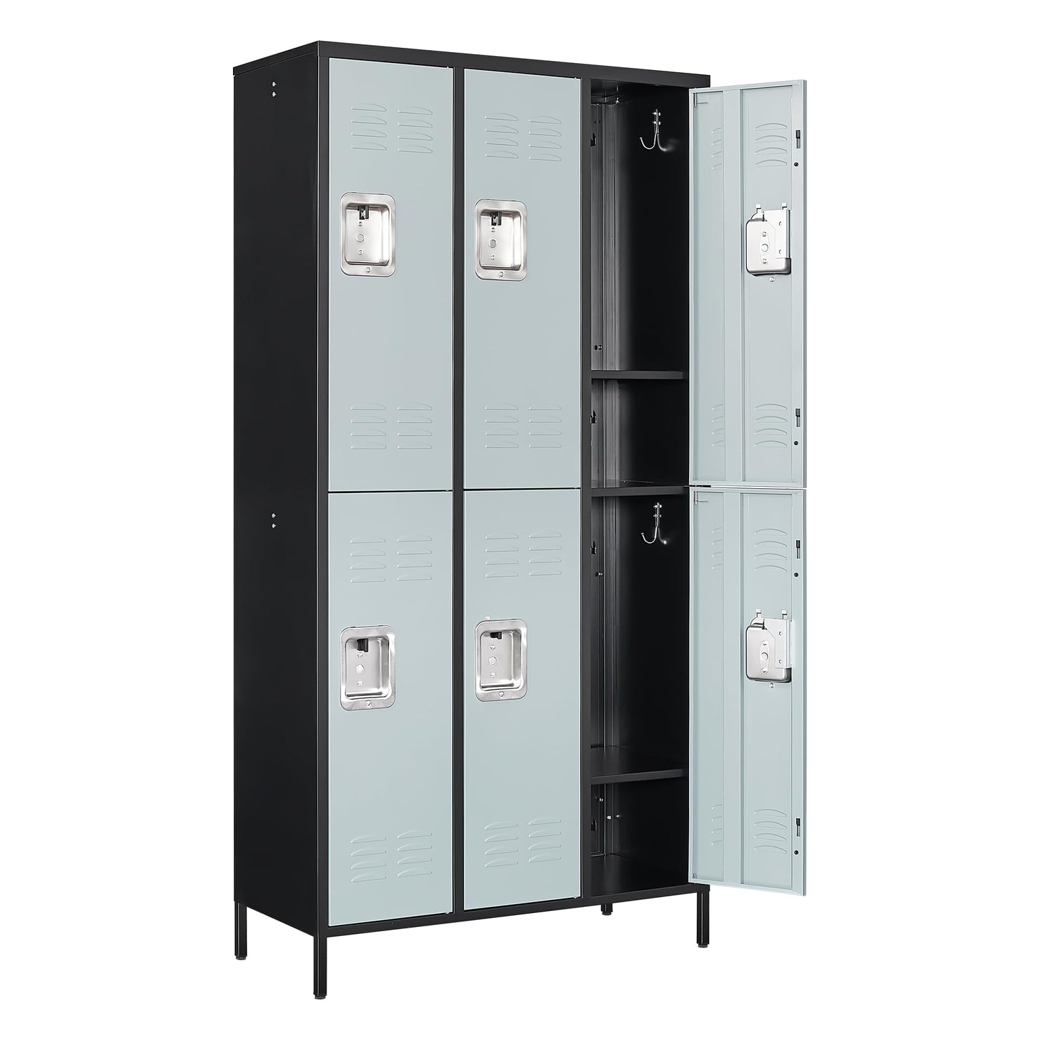 Anxxsu Metal Locker with 6 Doors Employees Locker, Metal Storage Locker with Hooks, 71" Storage Cabinet Lockers for Employees, Home, Office, Gym Requires Assembly (6 Doors, Black Grey)