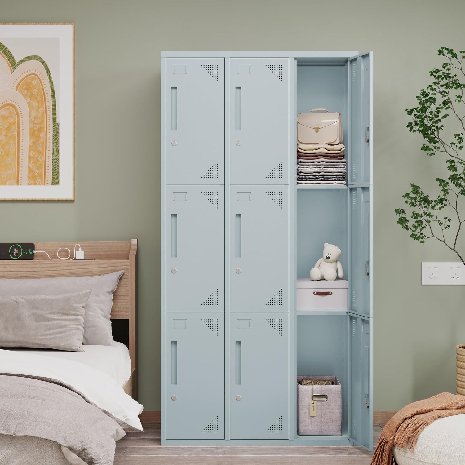 - 【Large Storage Capacity】: Metal locker 71"H x 35.5"W x 15.8"D. Equipped with 9 separate compartments to meet your storage needs for items of different sizes and meet most of your daily needs. Store handbags, coats, personal belongings, etc.
