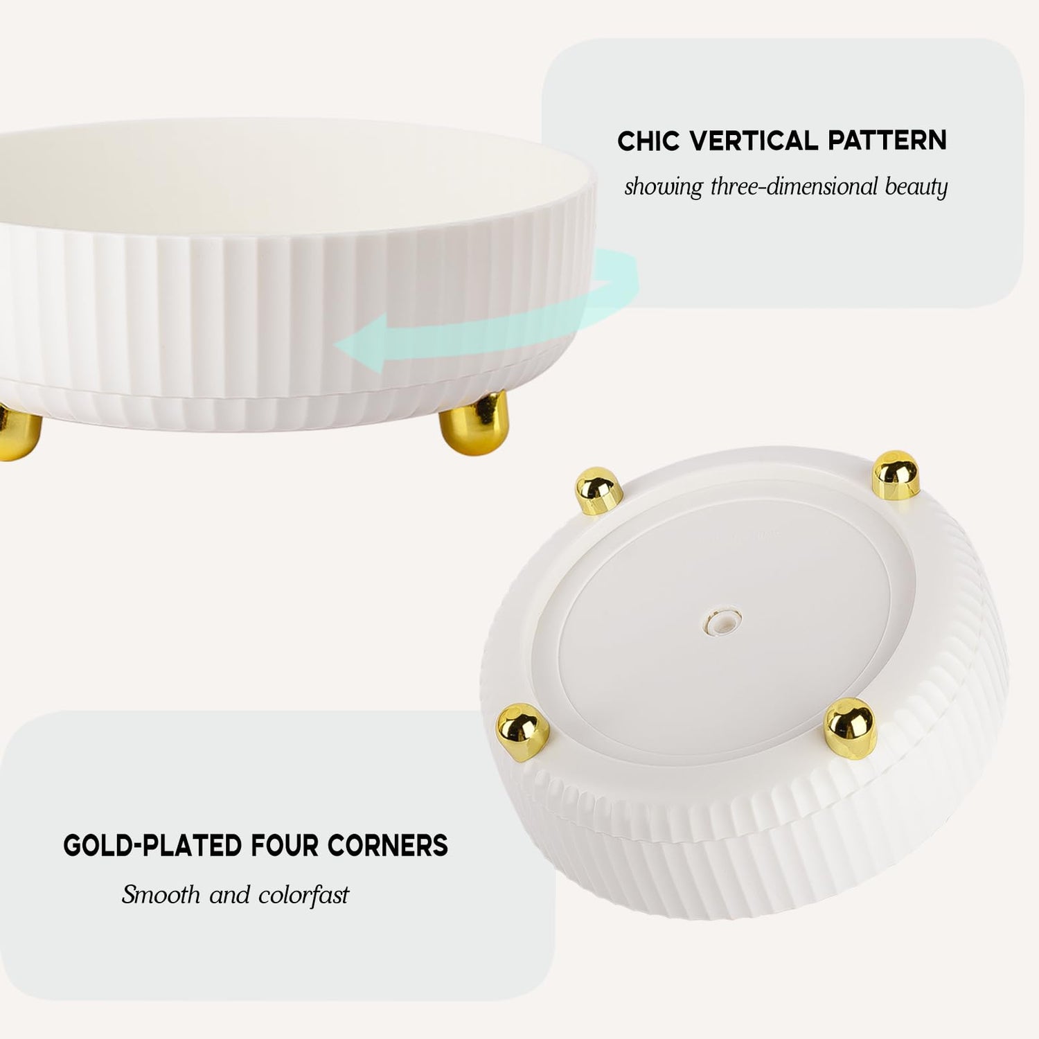 - HOME DECOR: Beauty rotating display stand has a minimalist sense of line and color, which has a unique lychee texture design on the bottom that will blend in perfectly with your existing decor, bringing a sense of sophistication and style to the home.