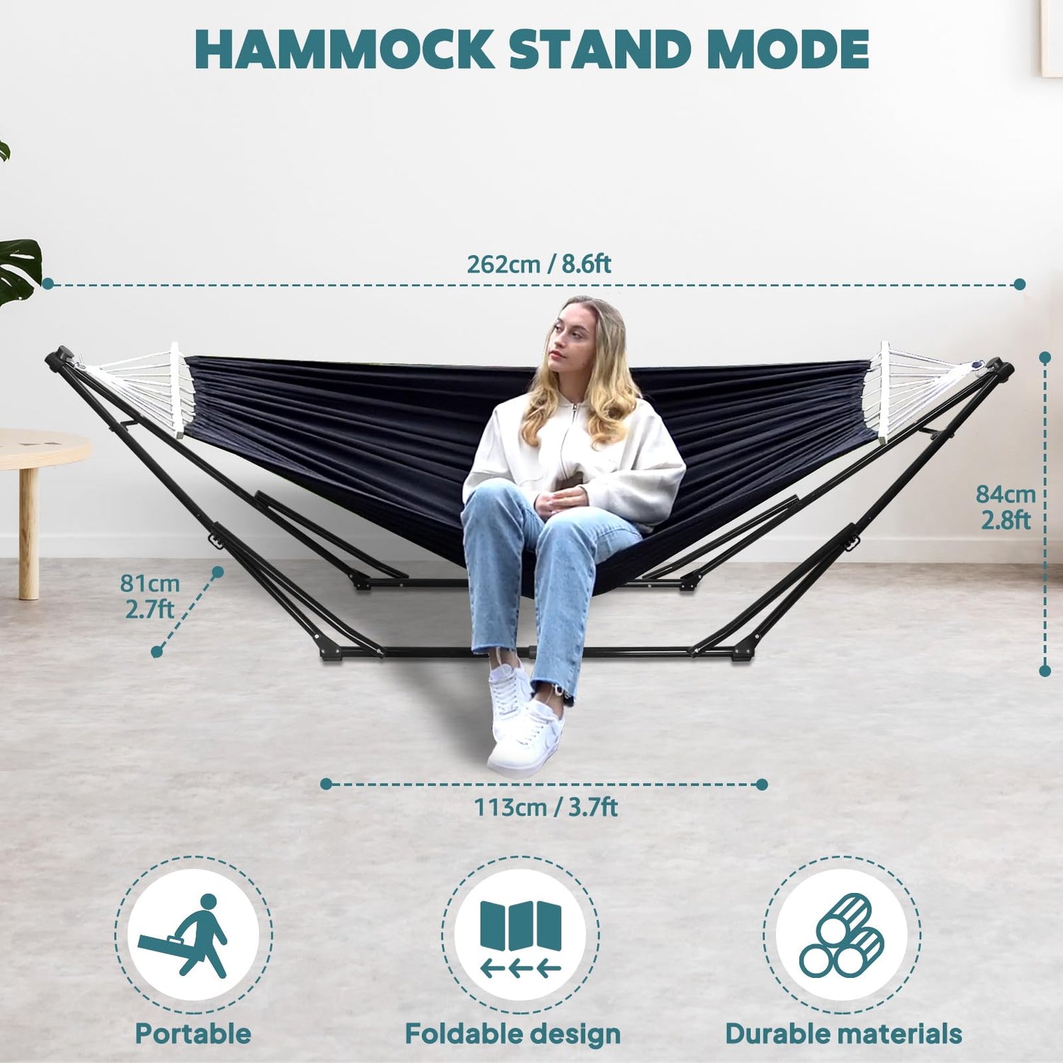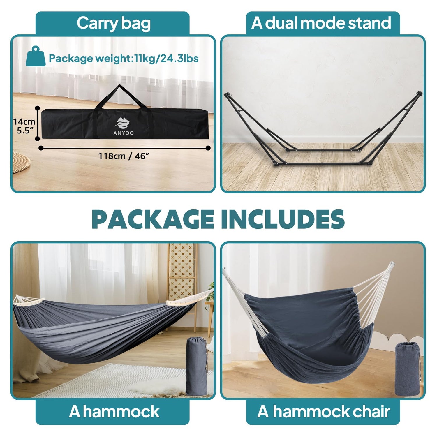 Anyoo 2 in 1 Hammock and Swinging Chair with Collapsible Steel Stand & Carrying Case,Portable & Adjustable,Easy Set Up for Outdoor,Indoor,Porch Swing,Patio,Garden,Camping Trip