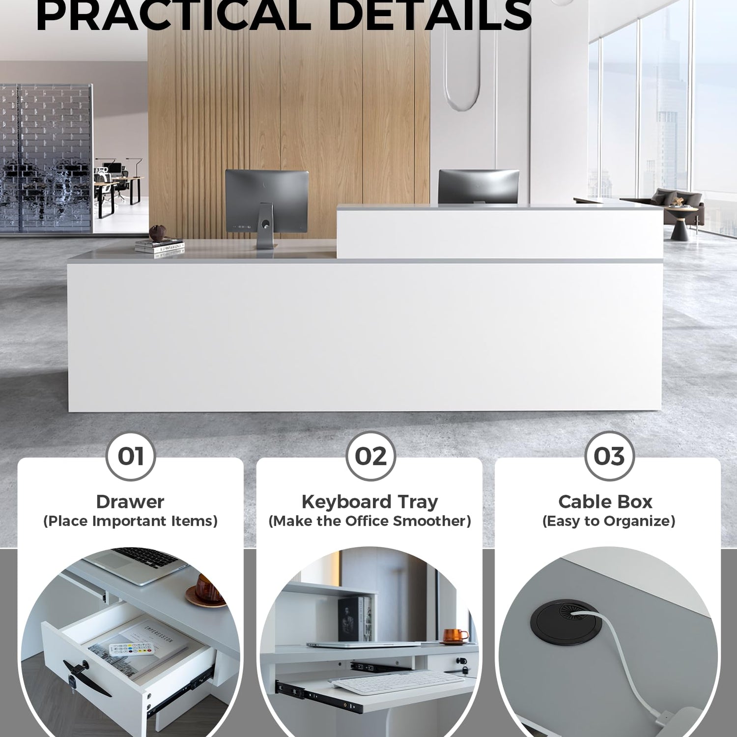 - ใ๐ฆ๐บ๐ฎ๐ฟ๐ ๐ฆ๐๐ผ๐ฟ๐ฎ๐ด๐ฒ ๐ณ๐ผ๐ฟ ๐ฅ๐ฒ๐ฐ๐ฒ๐ฝ๐๐ถ๐ผ๐ป ๐๐ณ๐ณ๐ถ๐ฐ๐ถ๐ฒ๐ป๐ฐ๐ใThis receptionist desk includes a lockable drawer, a smooth keyboard tray, and customizable shelves, giving staff secure and organized space. Perfect as a front desk reception counter or reception counter, it keeps files, devices, and essentials neatly arranged